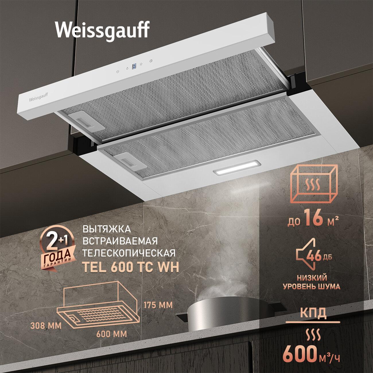 Закажите Weissgauff TEL 600 TC WH прямо сейчас и получите надежного помощника в борьбе за чистоту и комфорт на вашей кухне!