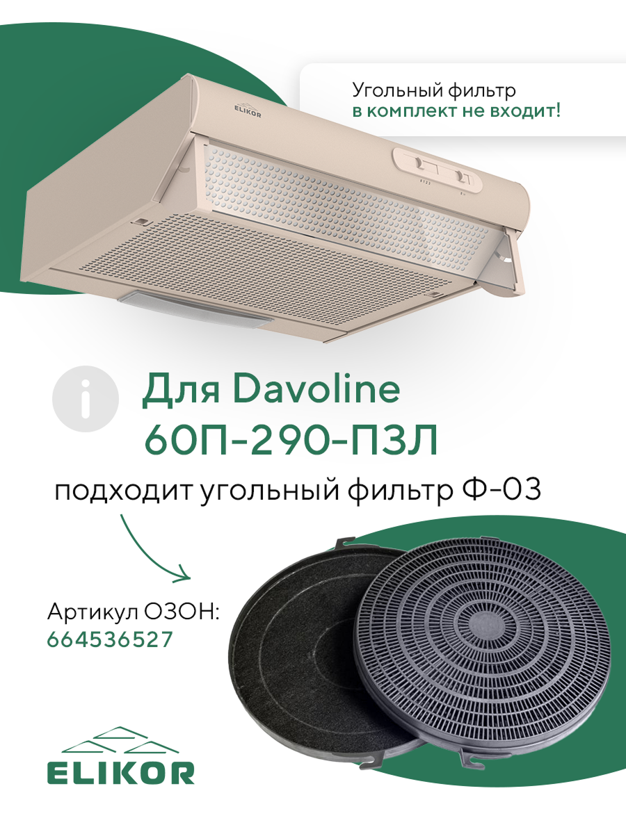 Кухонная вытяжка ELIKOR Davoline 60П-290-П3Л Кремовый - Идеальное решение для вашей кухни!