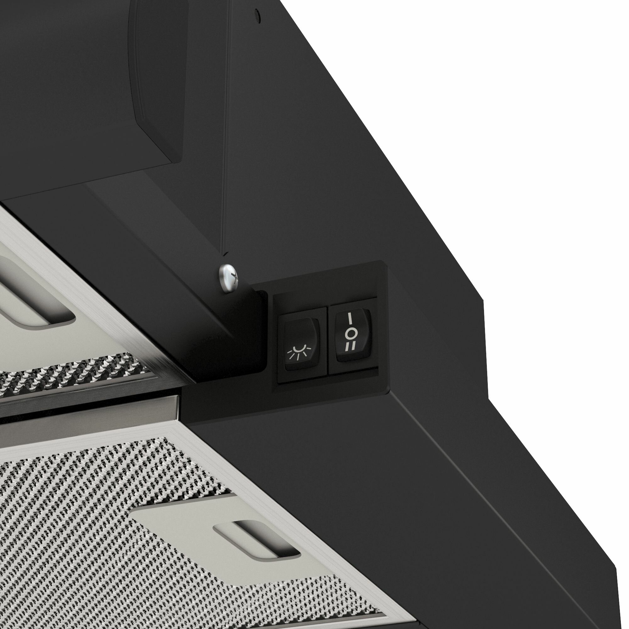 Черный цвет придает вытяжке современный и изысканный вид, который гармонично сочетается с различными стилями кухонной мебели. Она прекрасно дополнит как минималистичный, так и классический интерьер, подчеркивая ваш безупречный вкус и внимание к деталям.