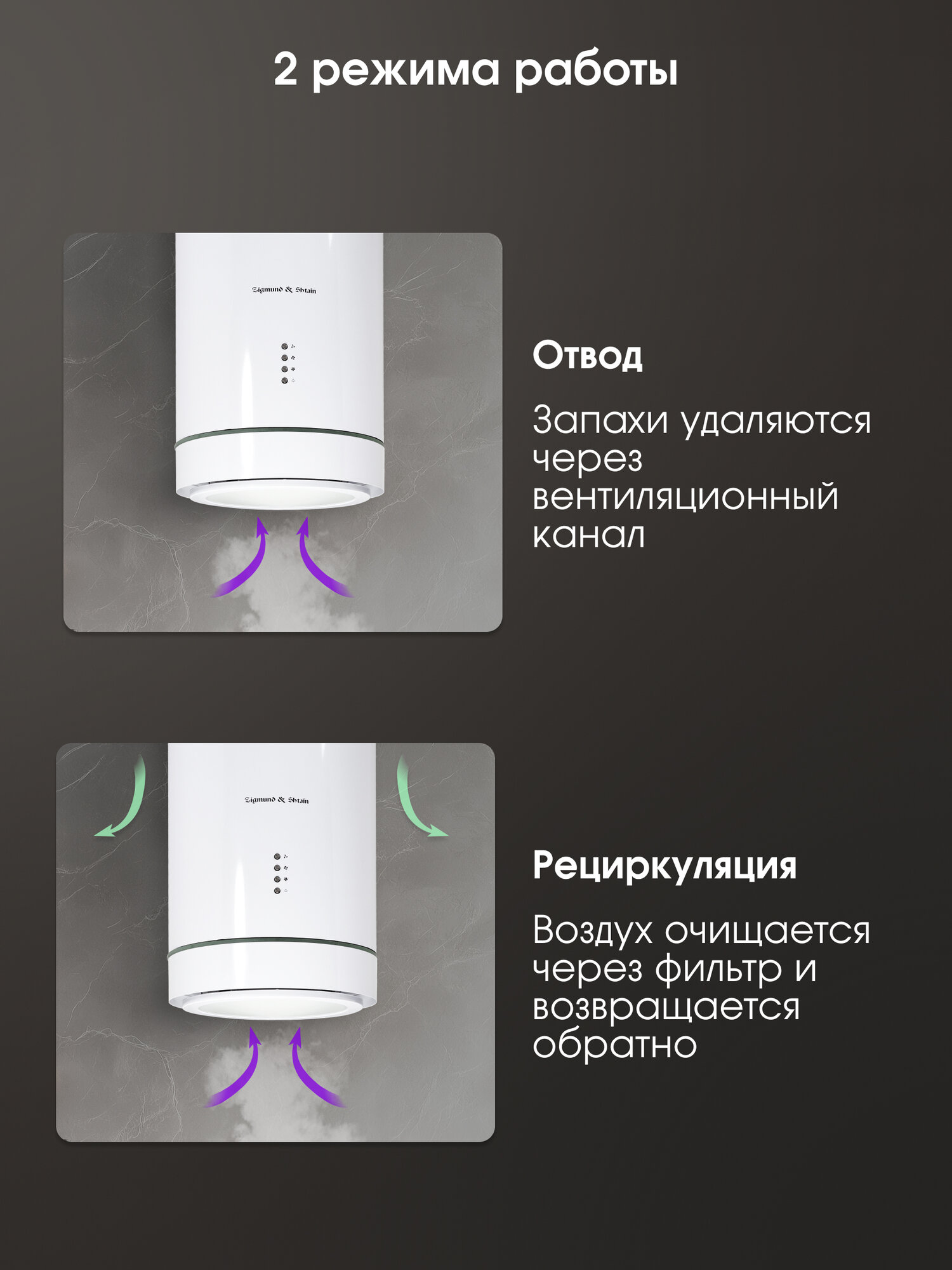 Вытяжка Zigmund & Shtain K 013.4 W – это не просто функциональный прибор, но и стильный элемент декора, который подчеркнет индивидуальность вашей кухни. Наслаждайтесь процессом приготовления пищи, не беспокоясь о запахах и загрязнении воздуха!