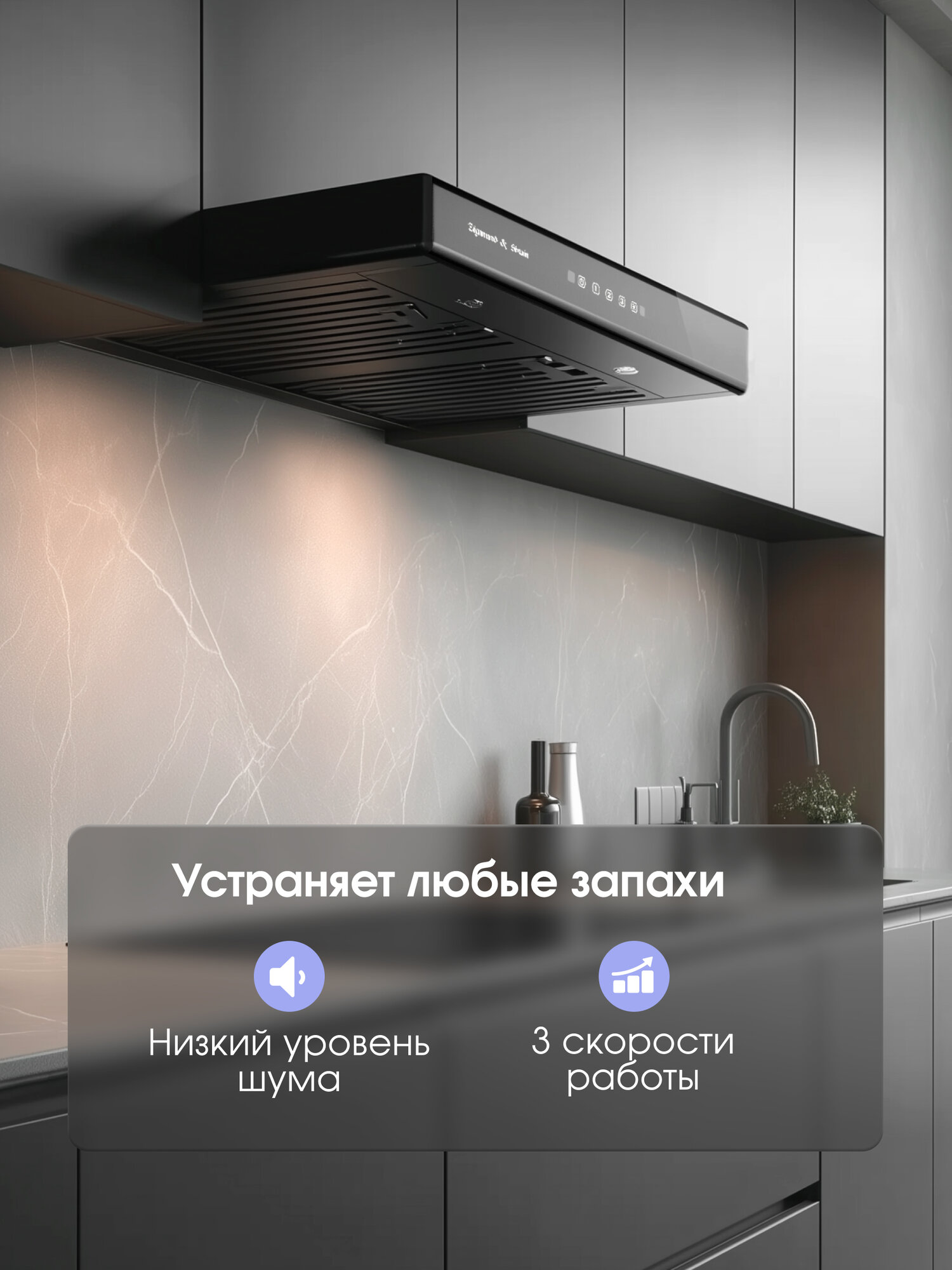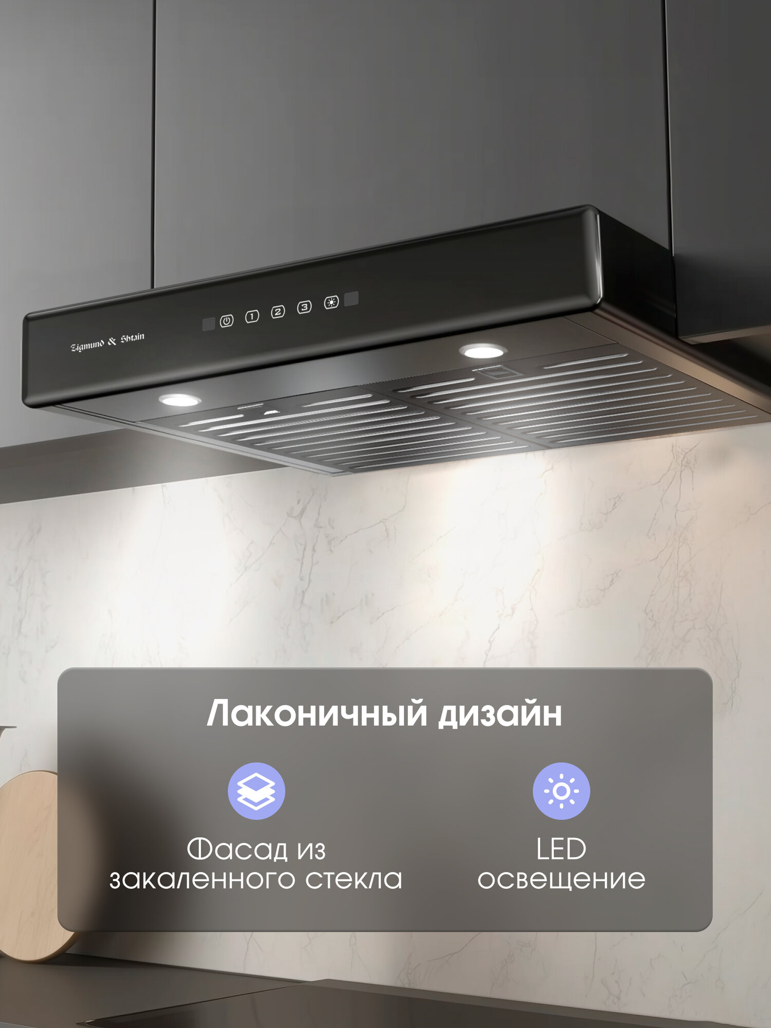 Эта вытяжка станет незаменимым помощником на вашей кухне. Она эффективно удаляет запахи, дым и испарения, образующиеся в процессе приготовления пищи, поддерживая чистоту воздуха и создавая комфортную атмосферу. Стильный дизайн и лаконичные формы вытяжки прекрасно впишутся в любой интерьер кухни, придавая ей современный и элегантный вид.