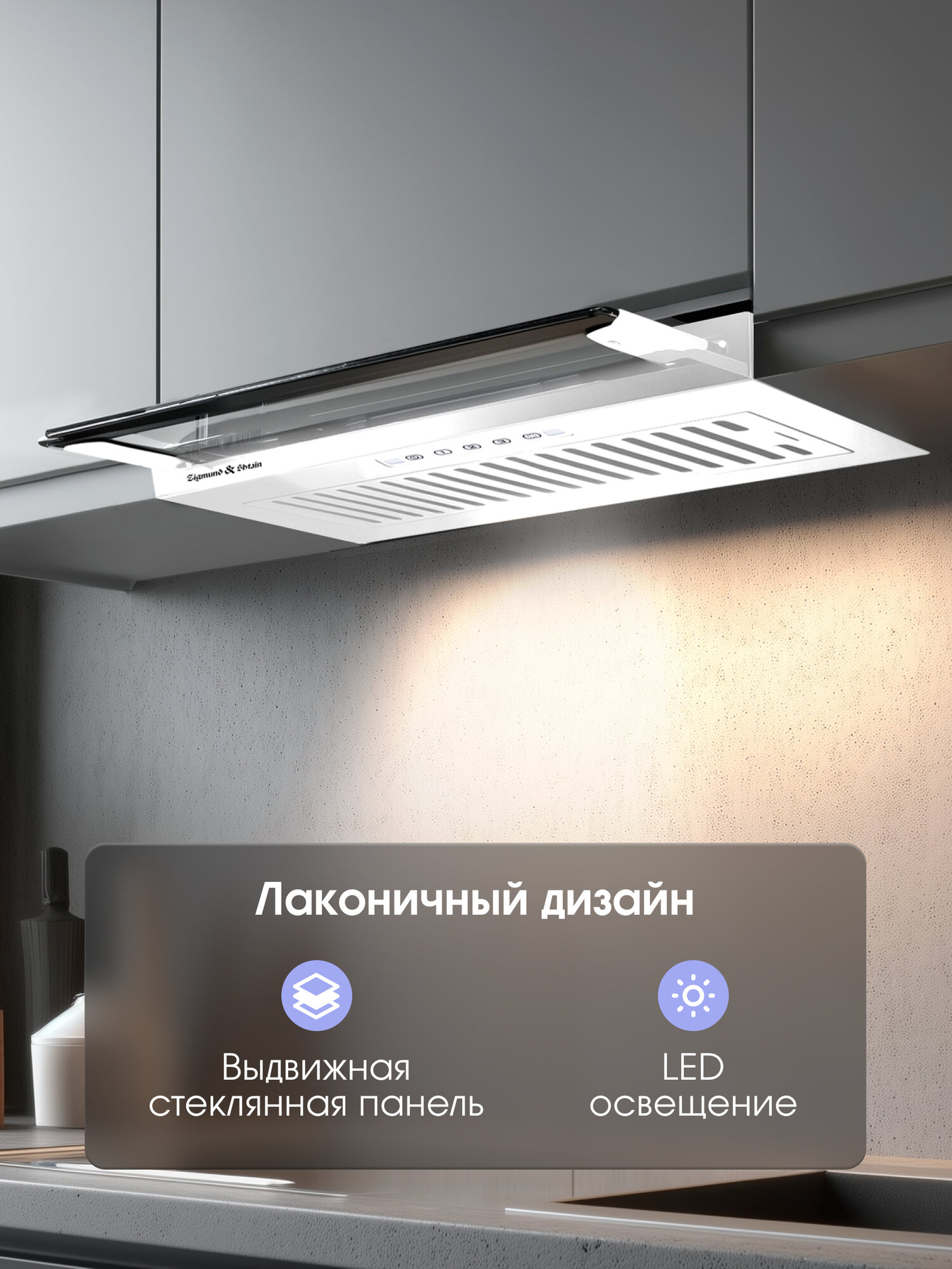 Эта вытяжка, выполненная в элегантном белом цвете, органично впишется в любой кухонный интерьер, добавляя ему современности и стиля. Встроенная конструкция позволяет ей максимально эффективно использовать пространство, экономя место и делая вашу кухню более функциональной.