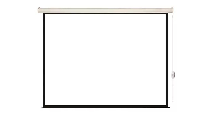 Матовое белое покрытие экрана гарантирует равномерное распределение света и отсутствие бликов, что особенно важно для комфортного просмотра даже в условиях яркого освещения. Черная кайма по периметру экрана улучшает контрастность изображения и создает ощущение глубины.