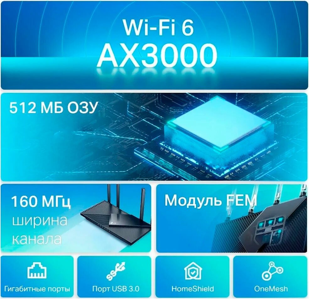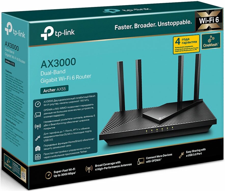 Archer AX55 от TP-Link - это современный Wi-Fi роутер, созданный для обеспечения надежного и высокоскоростного интернет-соединения в вашем доме. Он использует передовую технологию Wi-Fi 6, которая позволяет значительно повысить эффективность и скорость передачи данных, особенно в условиях большого количества подключенных устройств.