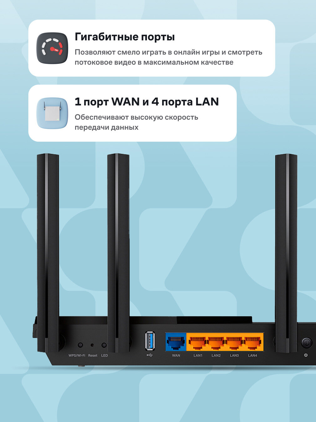Этот роутер, выполненный в стильном черном дизайне, легко впишется в любой интерьер. Четыре мощные внешние антенны обеспечивают широкое покрытие Wi-Fi, позволяя вам наслаждаться бесперебойным интернет-соединением в каждом уголке вашего дома. Забудьте о мертвых зонах и пропадающем сигнале – Archer AX55 Pro обеспечит стабильное и надежное подключение.