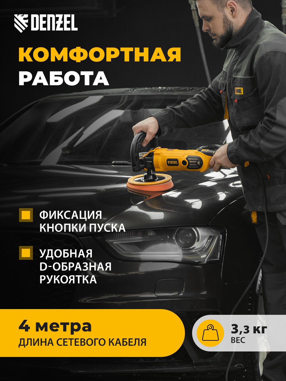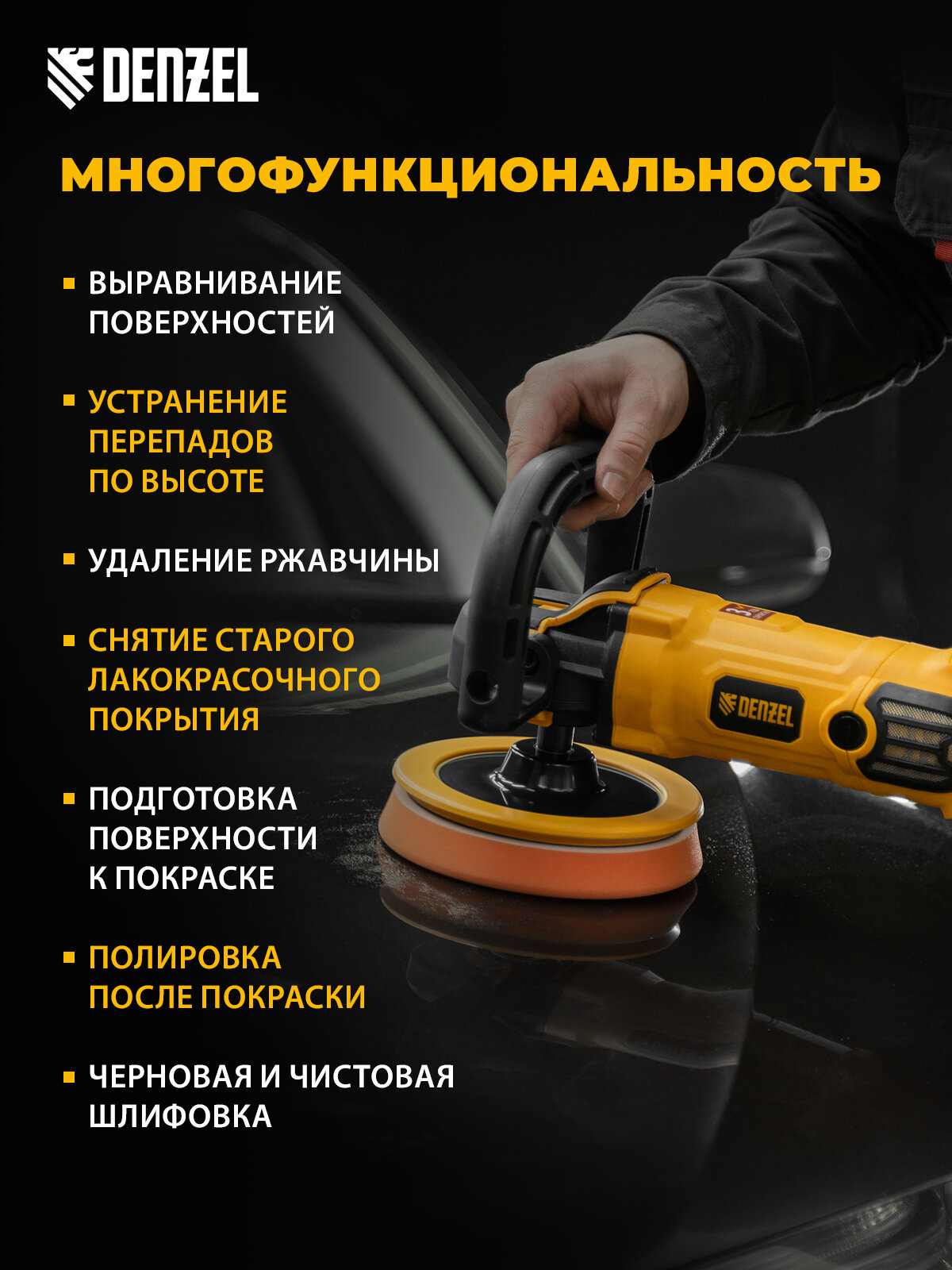 Придайте своим вещам сияющий вид с полировальной машиной Denzel CP-180!