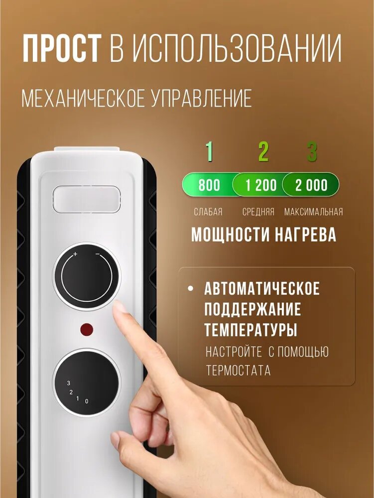 Благодаря использованию масла в качестве теплоносителя, радиатор обеспечивает мягкий и равномерный прогрев помещения, создавая приятную атмосферу без пересушивания воздуха. Вы сможете наслаждаться комфортным теплом в течение длительного времени, не беспокоясь о чрезмерном расходе электроэнергии.
