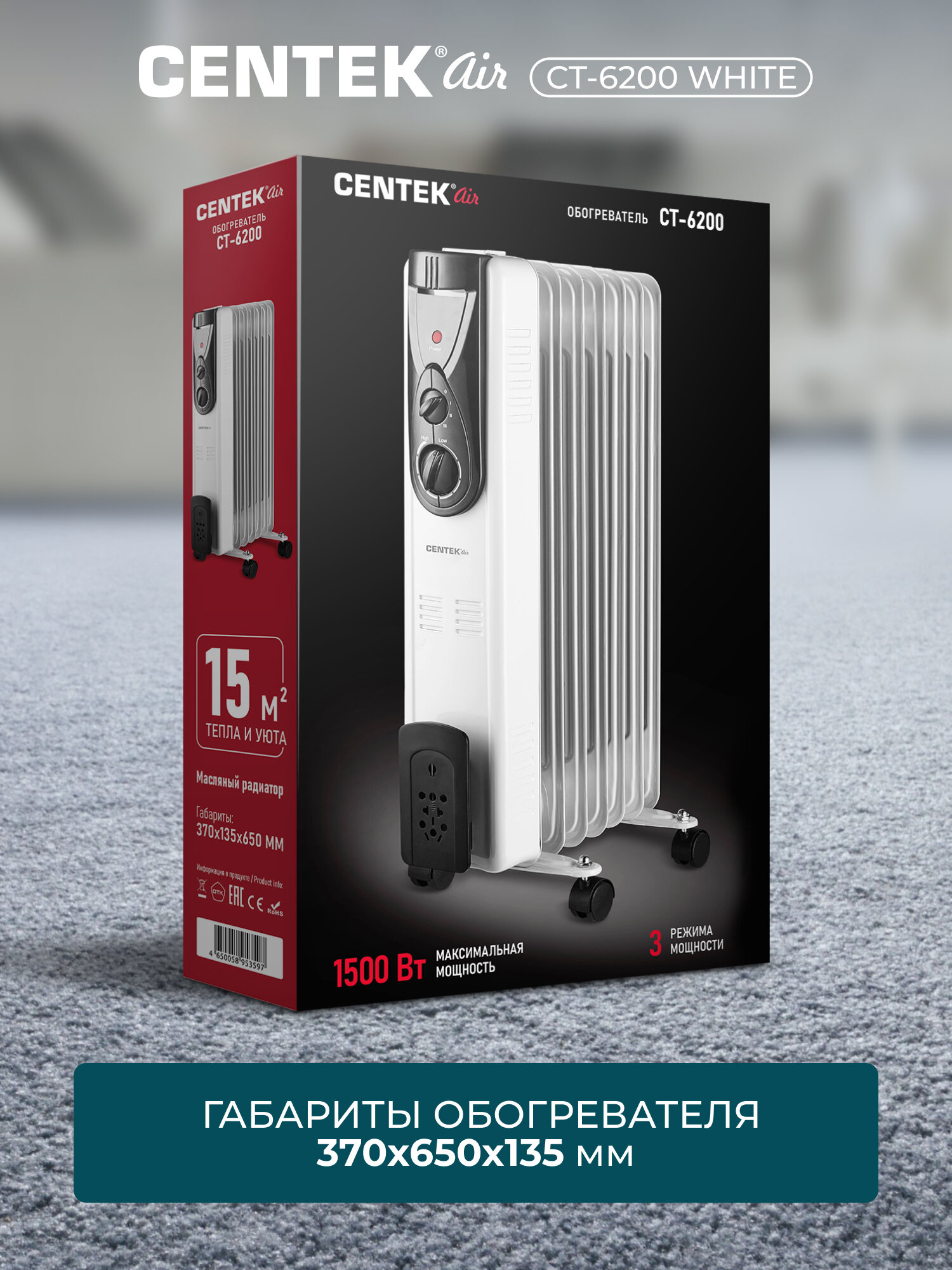 Современный дизайн и нейтральный белый цвет позволяют обогревателю гармонично вписаться в любой интерьер. Наслаждайтесь теплом и уютом с масляным обогревателем Centek CT-6200!