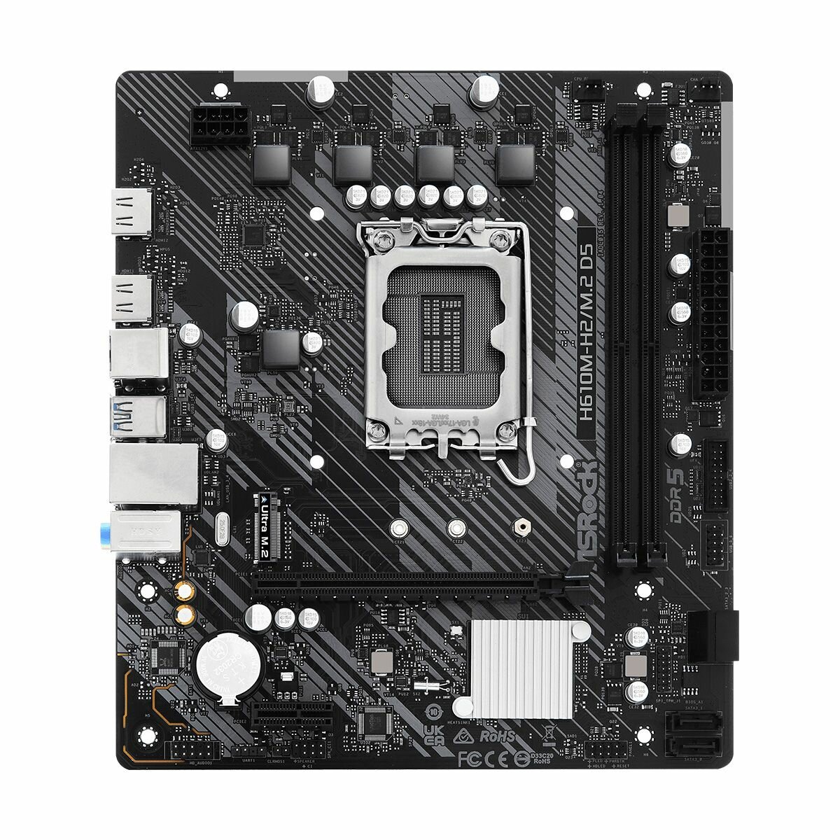 Благодаря форм-фактору Micro ATX, ASRock H610M-H2/M.2 D5 идеально подходит для компактных корпусов, что делает ее отличным выбором для сборки ПК, где пространство ограничено. Несмотря на компактный размер, плата предоставляет все необходимые возможности для подключения различных устройств и расширений.