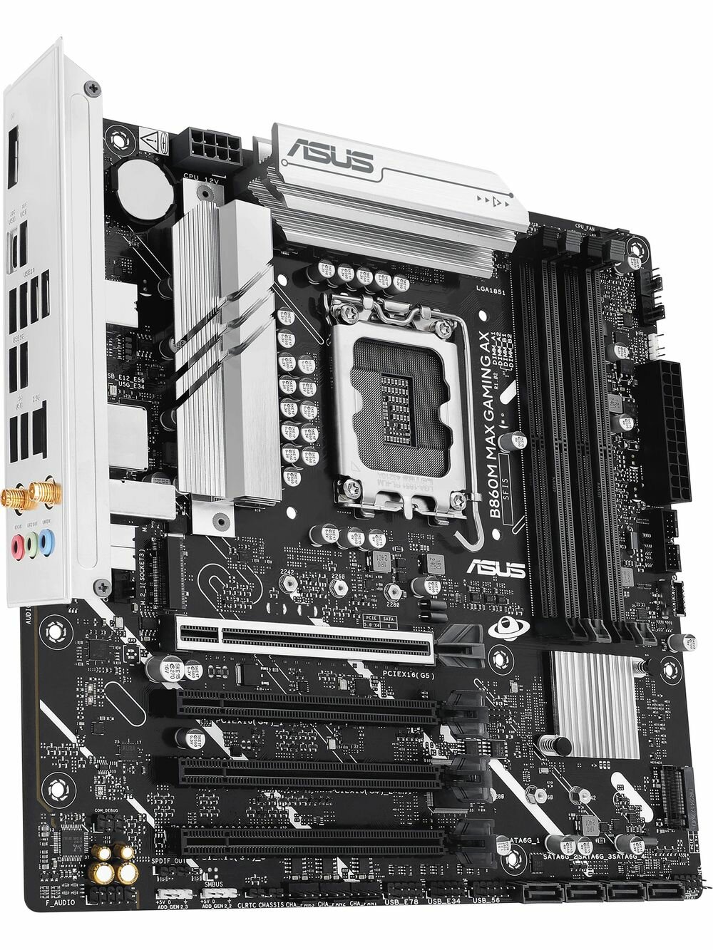 ASUS B860M-MAX GAMING AX оснащена необходимым набором интерфейсов для подключения всех ваших устройств: от высокоскоростных накопителей до периферии и видеокарт. Продуманная система охлаждения гарантирует стабильную работу компонентов даже при высоких нагрузках.