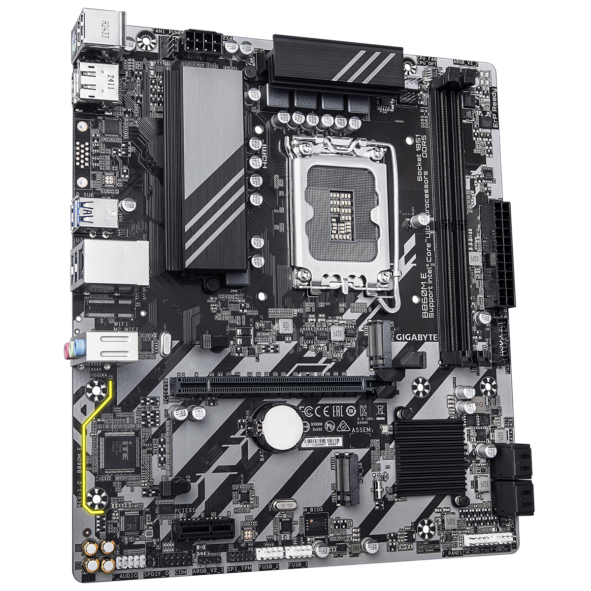 GIGABYTE B860M E предлагает широкие возможности расширения, позволяя вам подключить все необходимые компоненты и устройства. Наличие современных портов и разъемов обеспечивает высокую скорость передачи данных и удобство подключения периферии. Эта плата также поддерживает передовые технологии, улучшающие качество звука и изображения, делая вашу систему идеальной для игр, мультимедиа и работы с графикой.