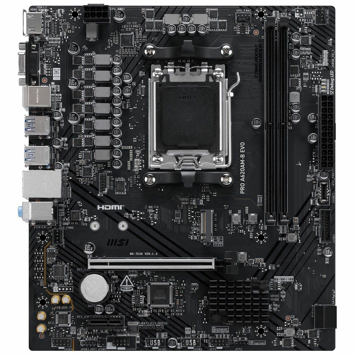Материнская плата MSI PRO A620AM-B EVO – надежное и функциональное решение для создания мощной и стабильной системы на базе процессоров AMD Ryzen под сокет AM5. Эта плата формата Micro-ATX идеально подходит для сборки компактных, но производительных компьютеров, как для работы, так и для развлечений.