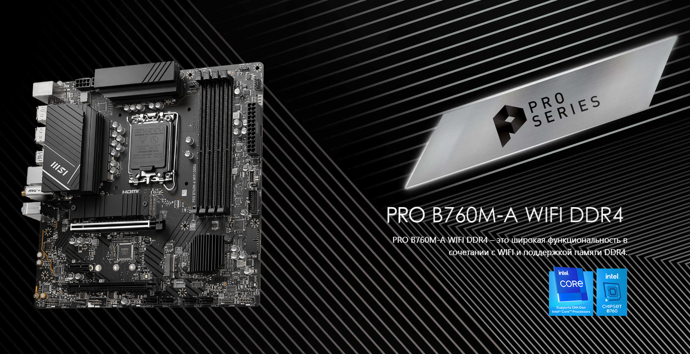 Материнская плата MSI PRO B760M-A WIFI DDR4, Soc-1700, Intel B760, mATX