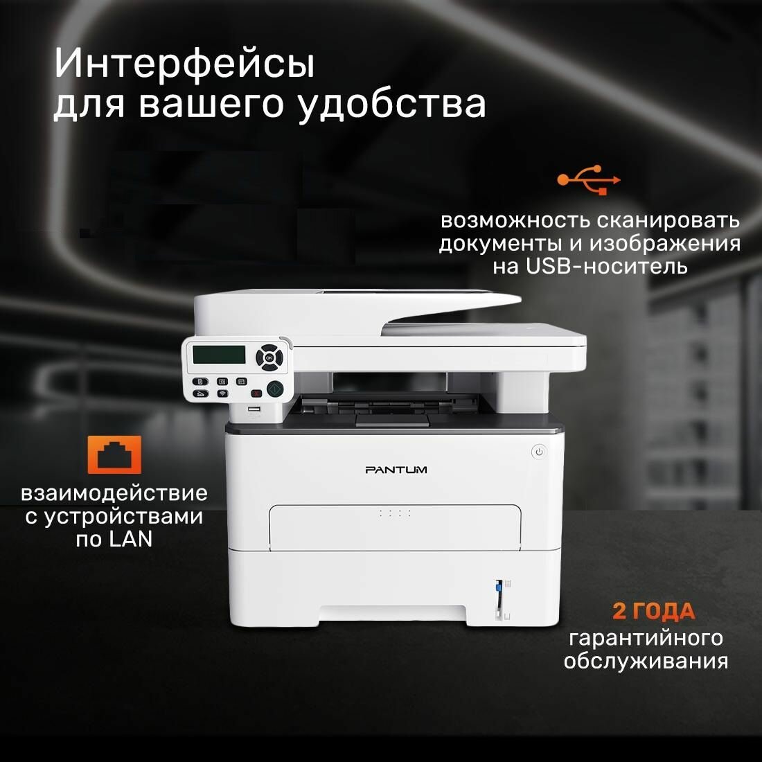 МФУ Pantum M7102DN предлагает удобные возможности подключения. Поддержка сетевого интерфейса LAN позволяет легко интегрировать устройство в существующую офисную сеть и обеспечить доступ к нему для всех сотрудников. Кроме того, наличие порта USB дает возможность печатать непосредственно с флеш-накопителей и других устройств.