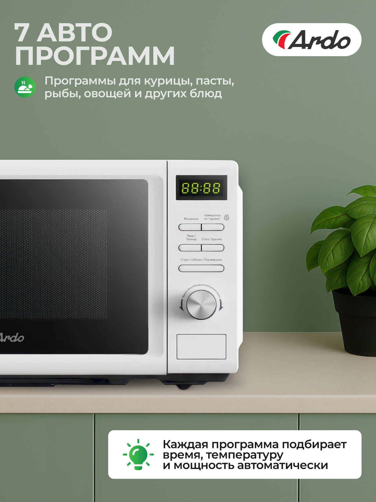 Ardo MEA20-EW2 – это не просто микроволновка, это надежный помощник в вашей кулинарной рутине. Она позволит вам быстро и легко готовить вкусные и полезные блюда для себя и своей семьи. Оцените все преимущества этой модели и сделайте свою жизнь проще и комфортнее.