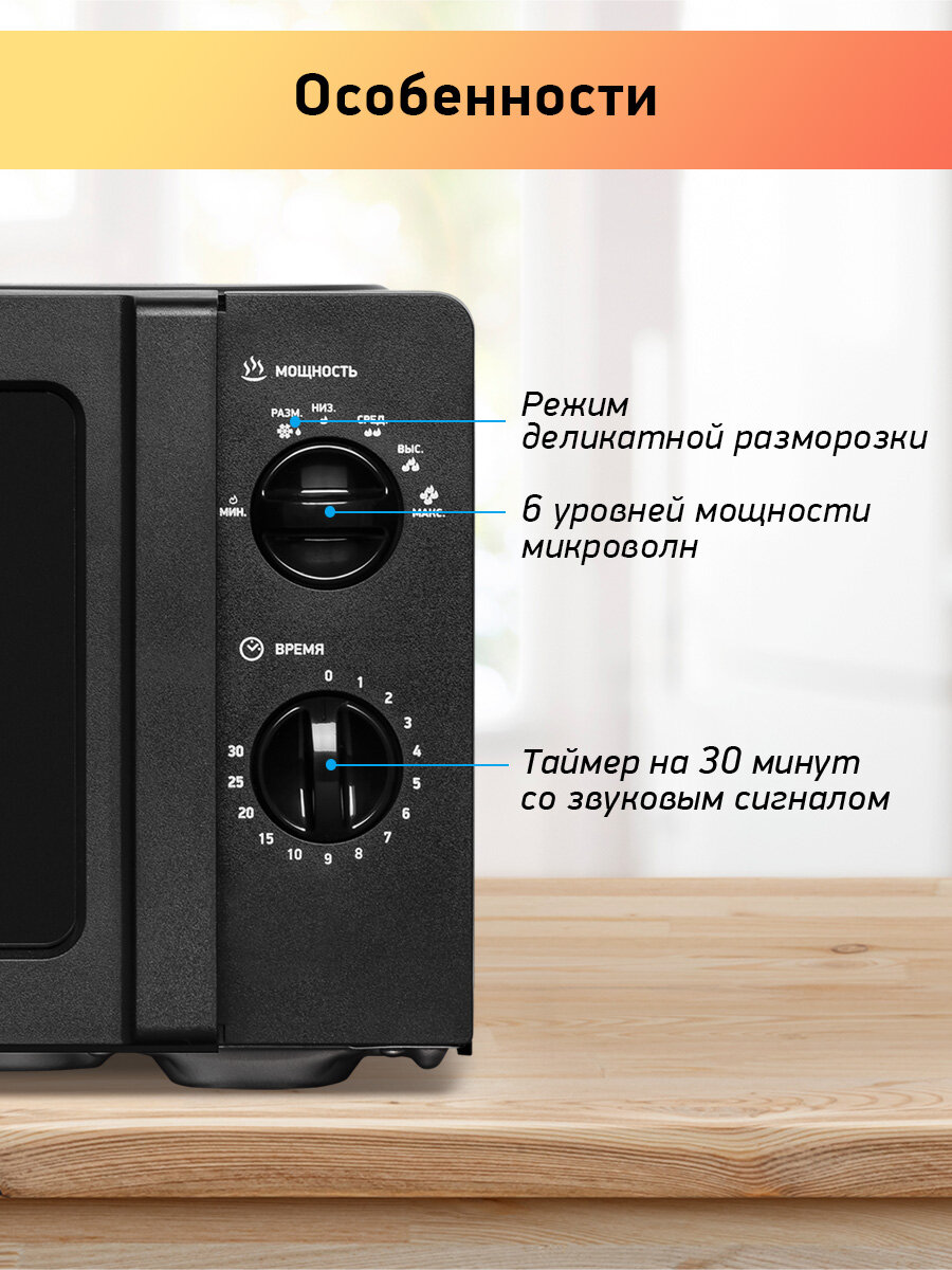 Современный дизайн этой микроволновой печи станет элегантным дополнением к любому кухонному пространству. Черный цвет корпуса придает устройству изысканность и универсальность, позволяя легко сочетать его с другой бытовой техникой.