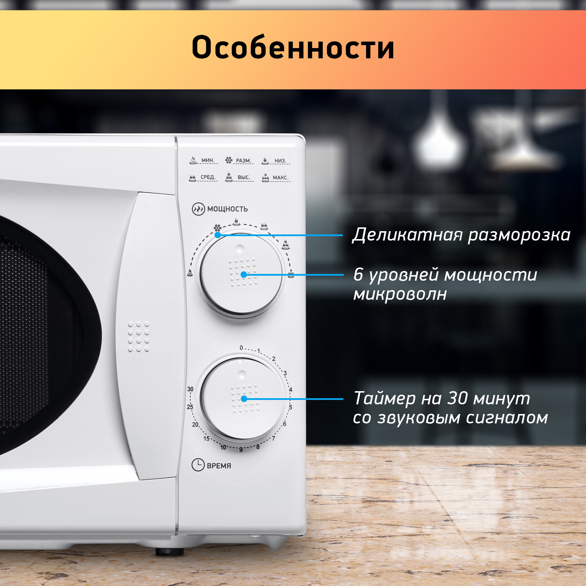Эта микроволновка станет незаменимым помощником на вашей кухне. Она идеально подходит для быстрого разогрева готовых блюд, размораживания продуктов и приготовления простых блюд. Благодаря интуитивно понятному управлению, вы сможете легко выбрать нужный режим работы и время приготовления.