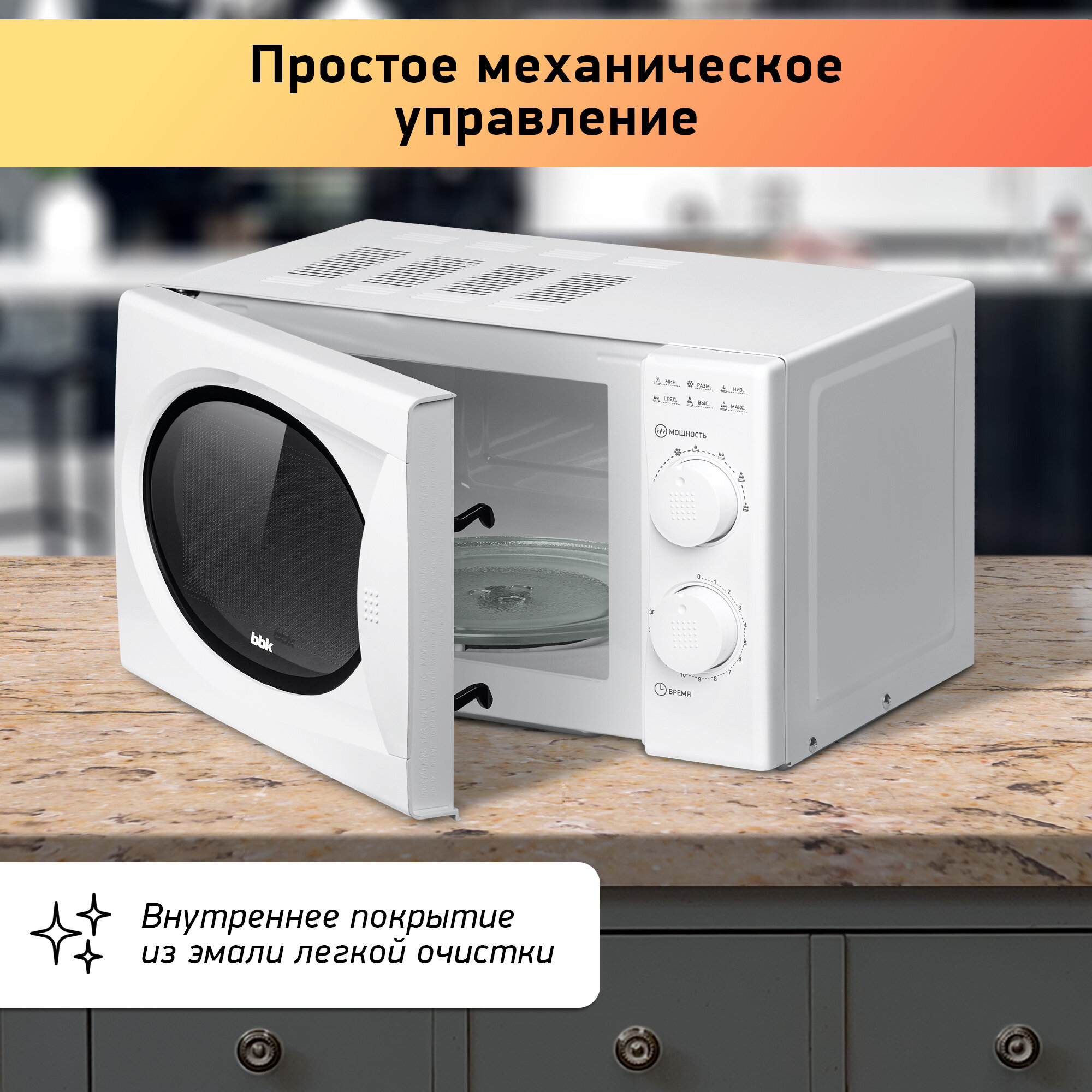 BBK 20MWS-803MW отличается современным дизайном, который гармонично впишется в интерьер любой кухни. Компактные размеры позволяют разместить её даже в небольшом пространстве, не занимая много места на столешнице.