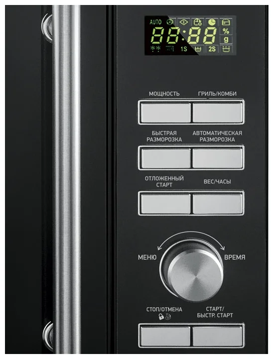 Модель микроволновой печи 25MWI-939T/B обладает богатым спектром технических возможностей и внушительной мощностью, а также вместительной камерой объемом 25 литров. Задать необходимую программу очень просто посредством электронного управления — на LED-дисплее загорится соответствующая индикация. Помимо привычных автоматических программ приготовления и размораживания блюд по весу, есть комбинированный режим, который заключается в использовании микроволн и гриля и подходит для приготовления больших кусков мяса или рыбы. Благодаря инверторной технологии модель функциональна, отличается низким энергопотреблением, сохраняет витамины и полезные качества продуктов. Благодаря инверторной технологии модель функциональна, отличается низким энергопотреблением, сохраняет витамины и полезные качества продуктов.