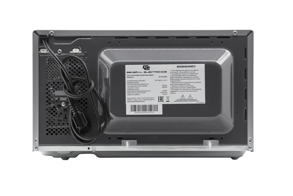 General Electronics GE-DG420S – это отличное сочетание цены и качества. Она станет незаменимым помощником на вашей кухне, позволяя вам наслаждаться вкусной и горячей едой в любое время. Приобретите эту микроволновую печь и оцените ее удобство и функциональность уже сегодня!