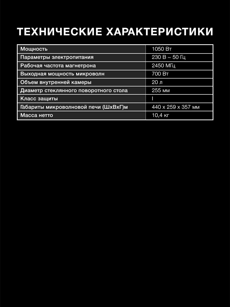 Черный цвет корпуса придает этой микроволновой печи элегантный и современный вид, который гармонично впишется в интерьер любой кухни. Она не только функциональна, но и станет стильным акцентом в вашем доме.