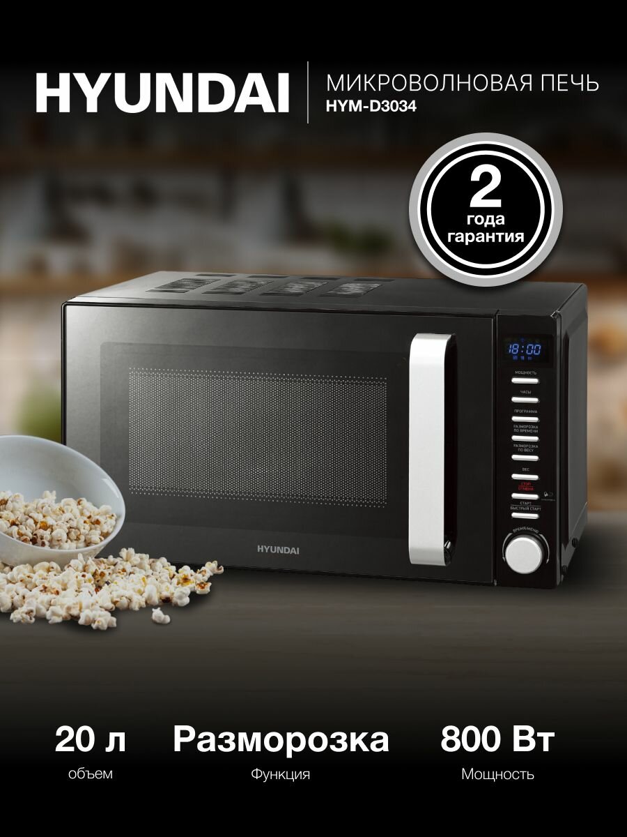 Hyundai HYM-D3034 – это отличный выбор для тех, кто ищет качественную и надежную микроволновую печь по доступной цене. Она станет вашим незаменимым помощником на кухне, экономя ваше время и силы. Почувствуйте комфорт и легкость в приготовлении пищи с Hyundai HYM-D3034!