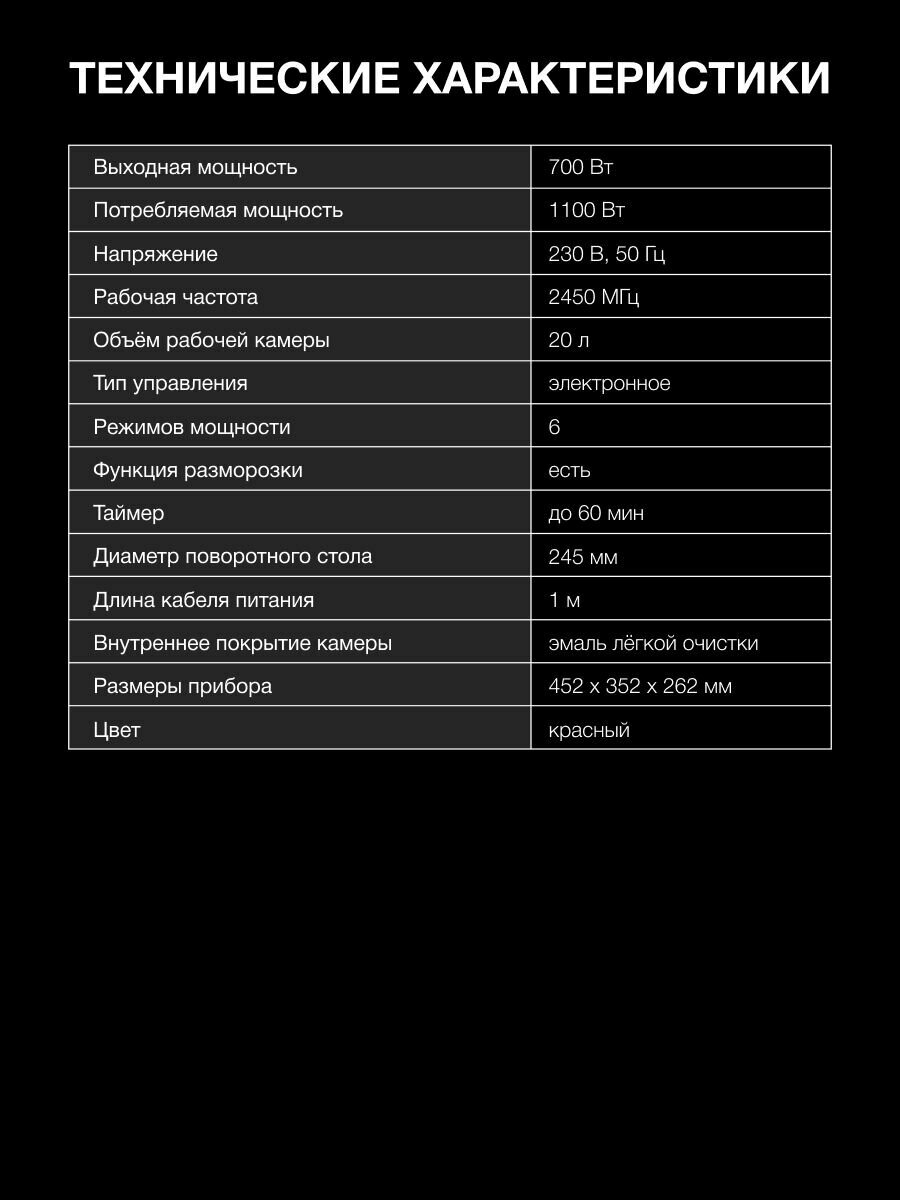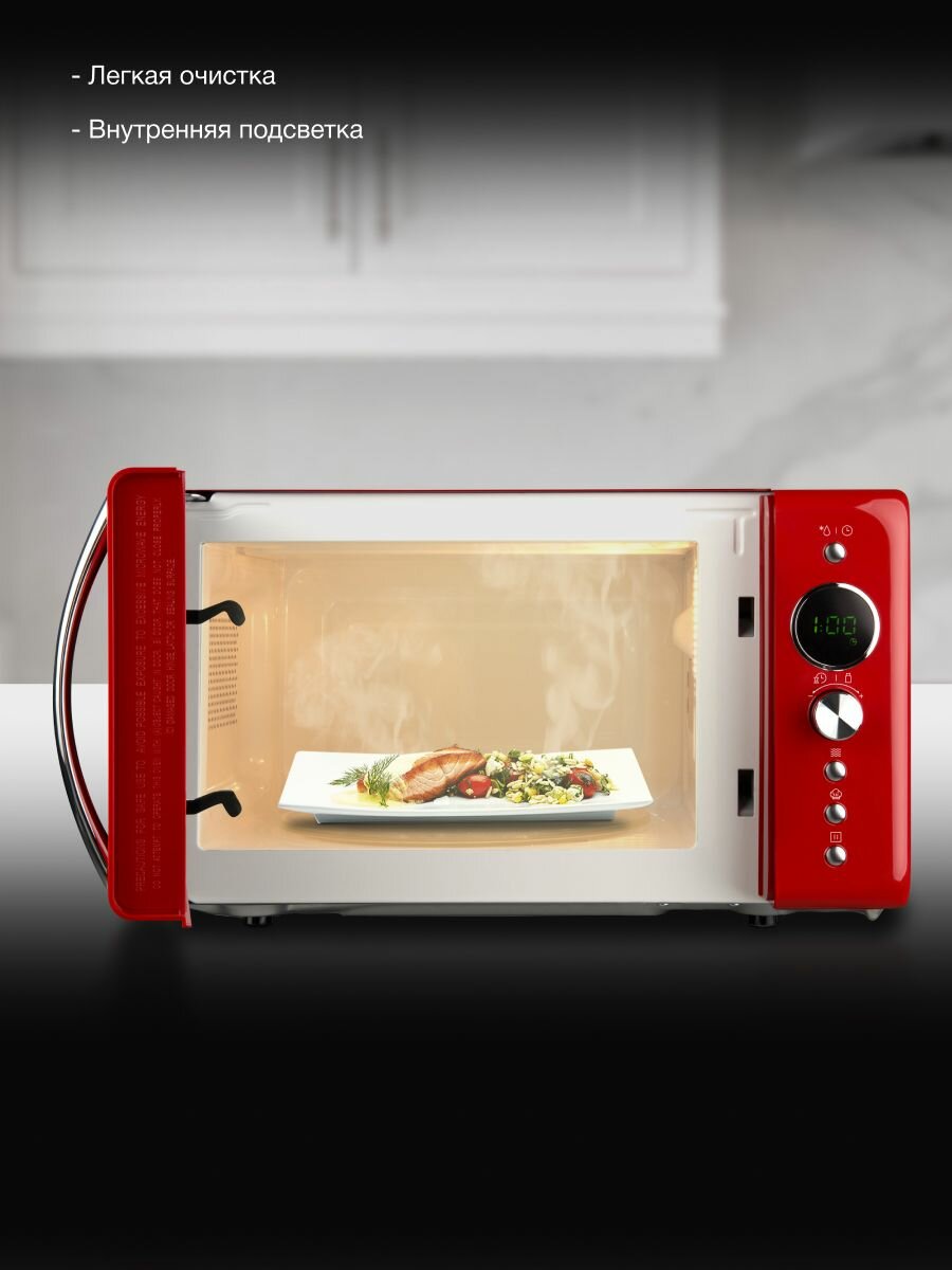 Эта микроволновая печь станет отличным решением для небольших кухонь, предлагая оптимальный объем для повседневных задач. Простота управления и интуитивно понятные настройки делают ее доступной для пользователей любого возраста и уровня подготовки. Вы сможете легко выбрать нужный режим приготовления, разморозить продукты или быстро разогреть любимое блюдо.