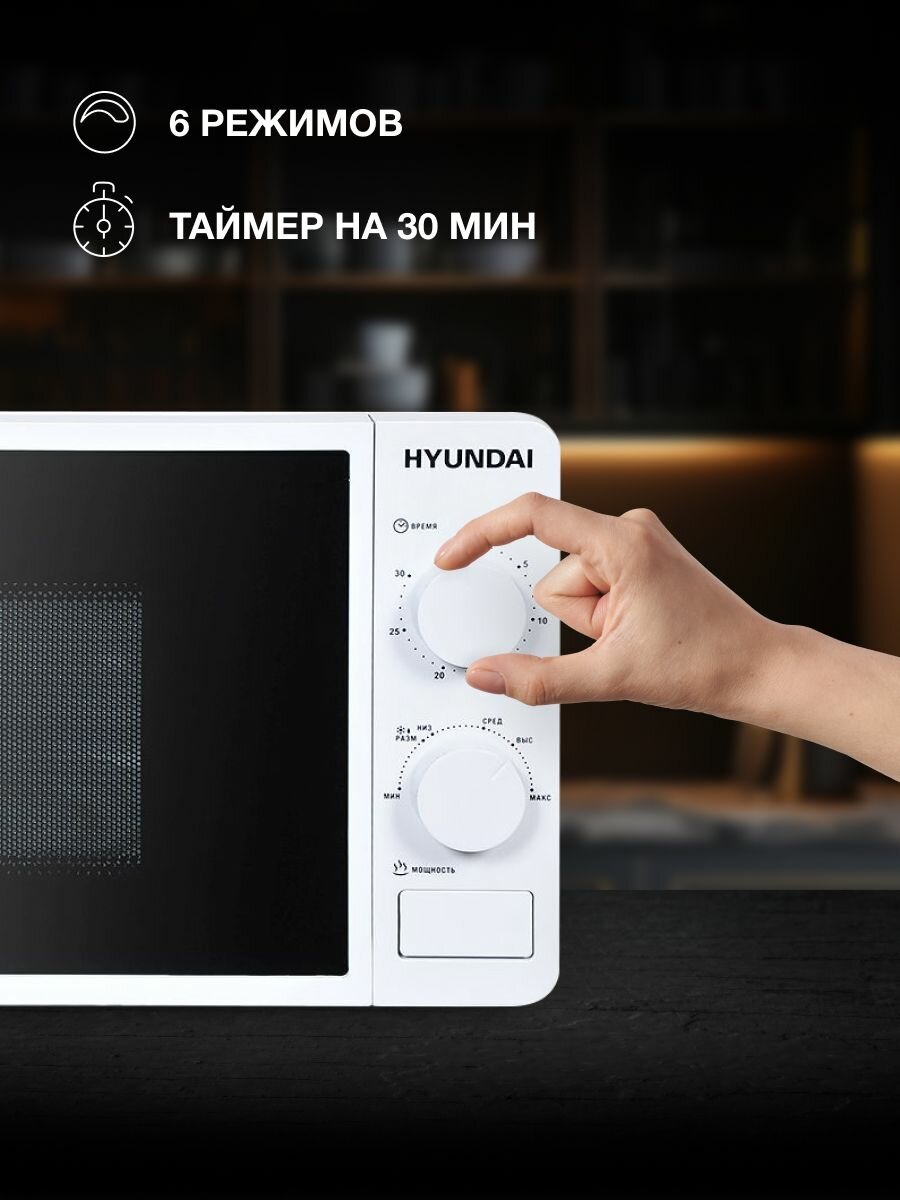 Если вы ищете надежного помощника на кухне, который сэкономит ваше время и силы, то микроволновая печь Hyundai HYM-M2003 – это именно то, что вам нужно! Забудьте о долгом стоянии у плиты и сложных рецептах – с этой микроволновой печью приготовление еды превратится в настоящее удовольствие. Подарите себе комфорт и удобство с Hyundai HYM-M2003!