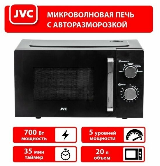 Микроволновая печь JVC JK-MW135M – это оптимальное сочетание цены и качества. Она станет незаменимым помощником на вашей кухне, экономя ваше время и усилия. Забудьте о долгом стоянии у плиты – с JVC JK-MW135M приготовление еды превратится в удовольствие!