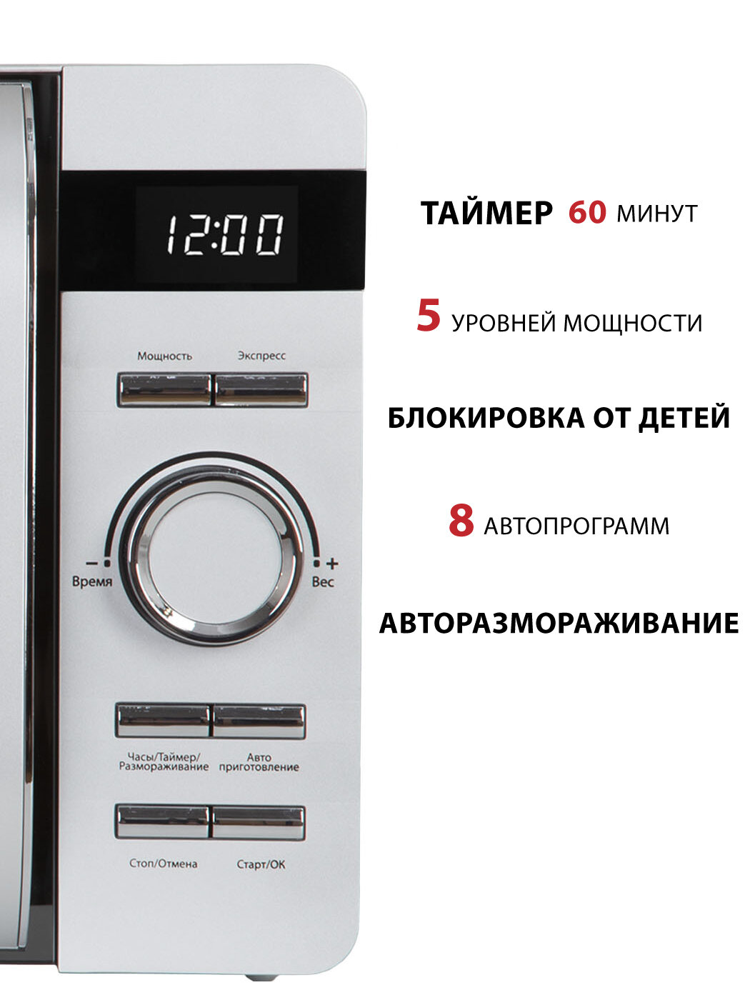 С предустановленными автоматическими программами приготовление любимых блюд станет еще проще и быстрее. Больше не нужно гадать, какое время и мощность выбрать – просто выберите нужную программу, и микроволновка сделает все остальное за вас.