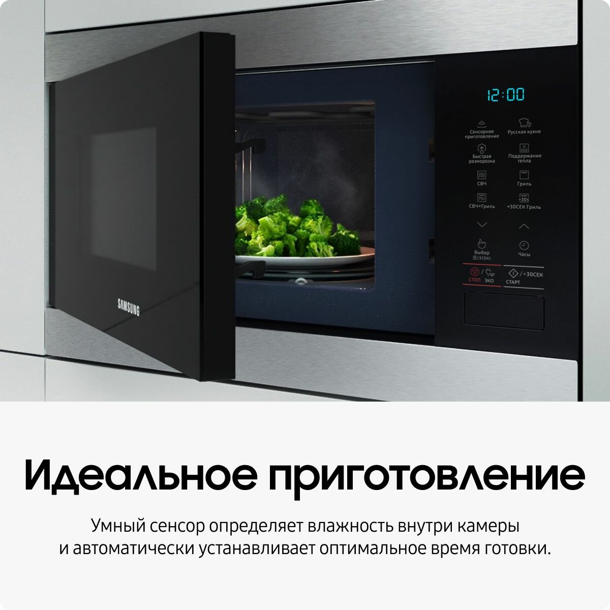Элегантный дизайн микроволновой печи, выполненный из высококачественной нержавеющей стали, придаст вашей кухне современный и стильный вид. Встраиваемая конструкция позволит максимально эффективно использовать пространство, а интуитивно понятное сенсорное управление обеспечит комфортное взаимодействие с прибором.
