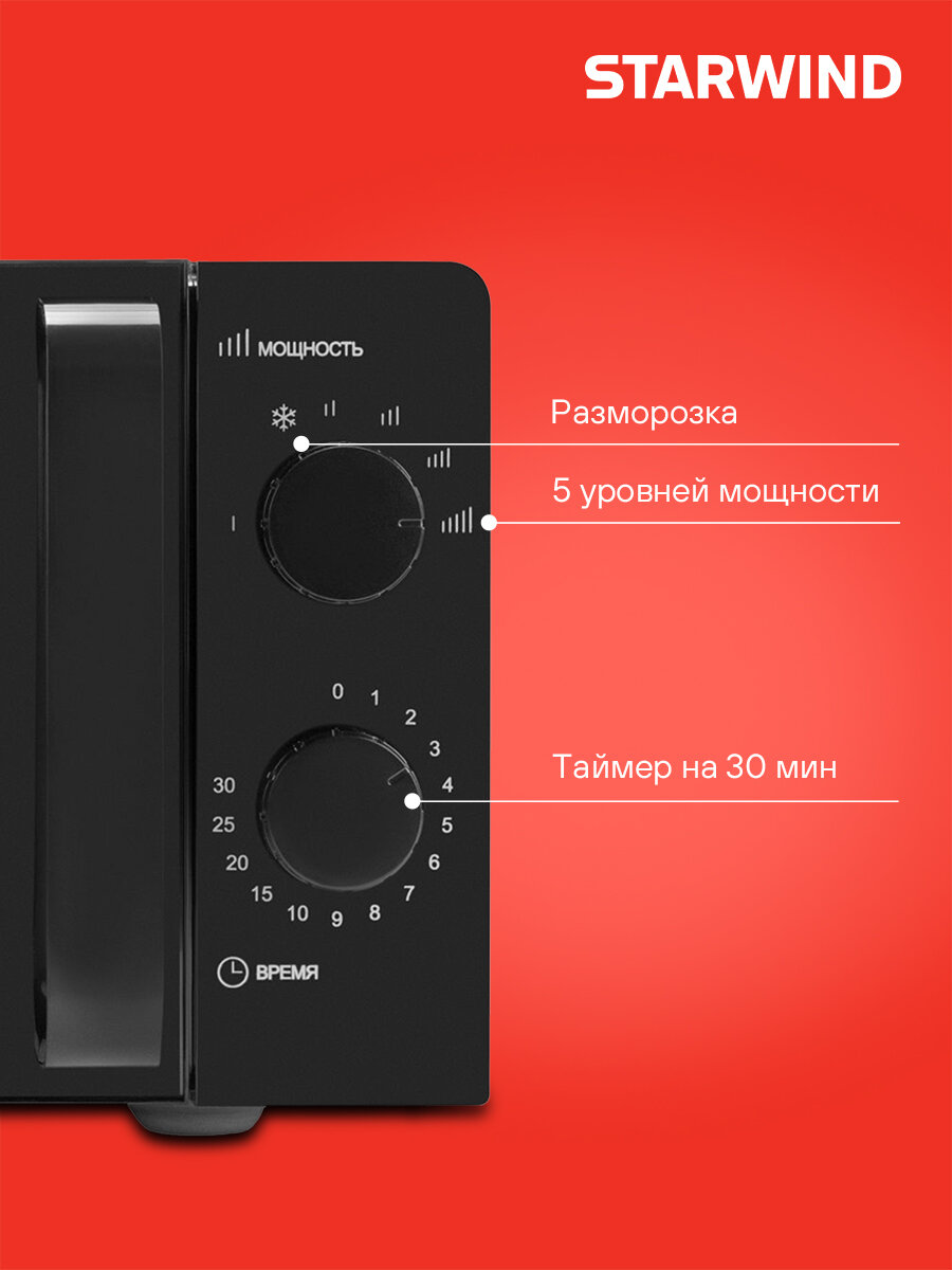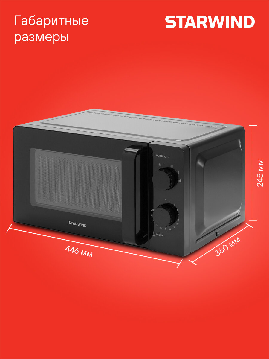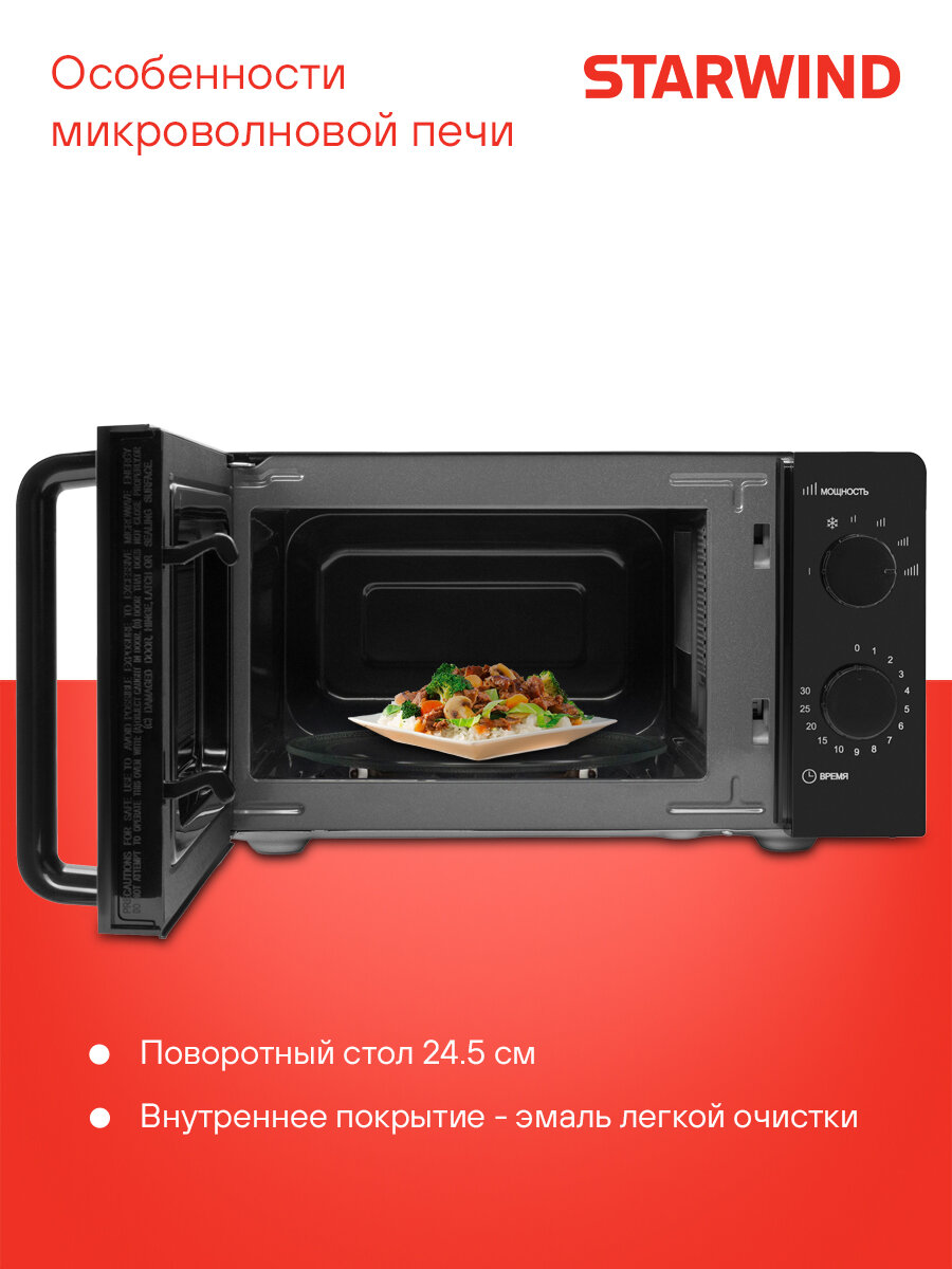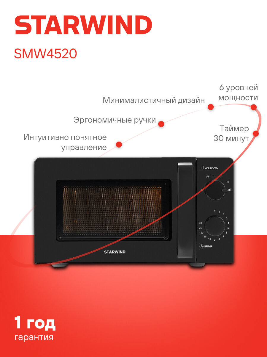 Эта микроволновка создана для того, чтобы упростить вашу жизнь и сделать процесс приготовления пищи максимально приятным и быстрым. Наслаждайтесь вкусом любимых блюд, не тратя много времени и усилий. Starwind SMW4520 – это ваш лучший выбор!