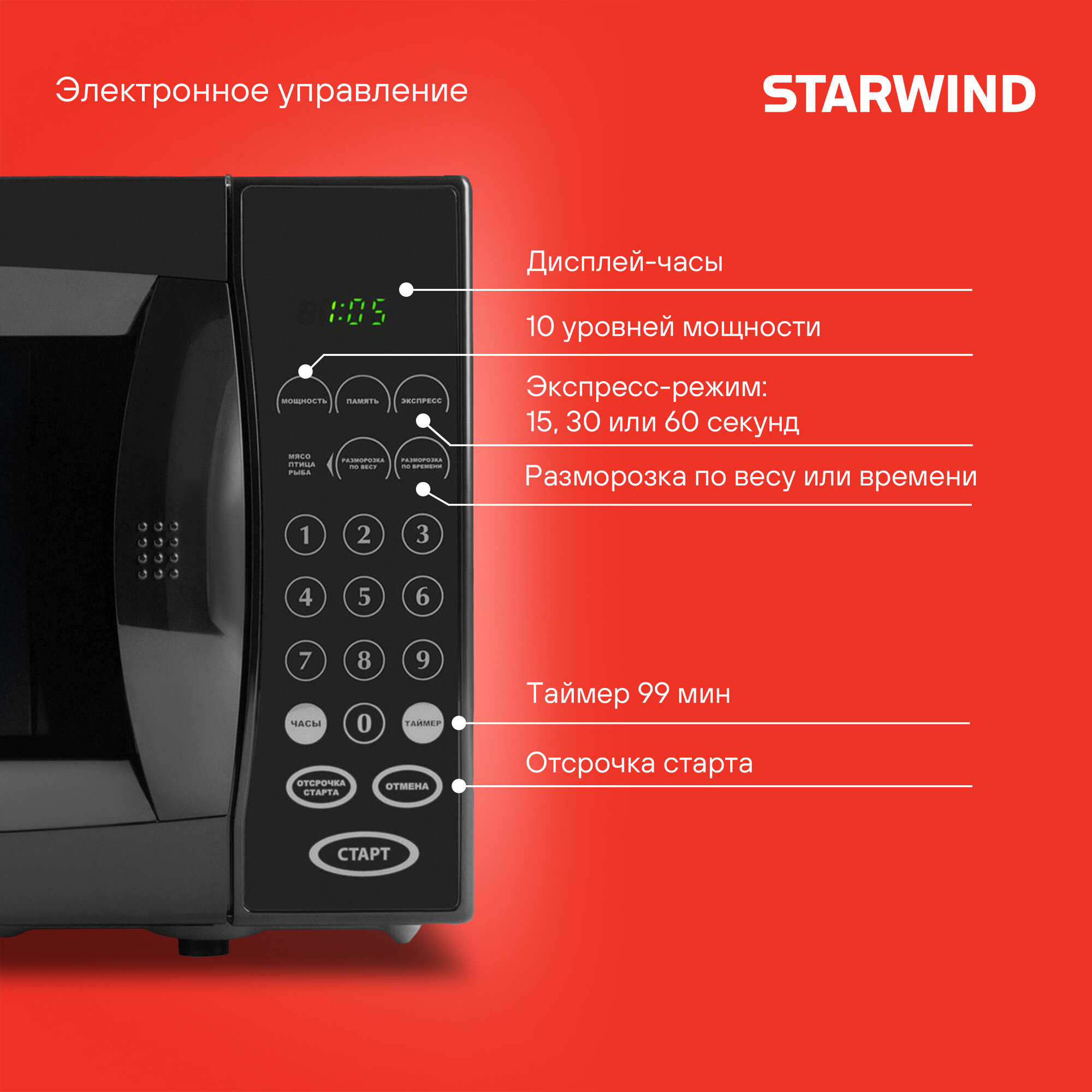 Выбирая микроволновую печь Starwind SMW5020, вы получаете надежного помощника в приготовлении пищи, который прослужит вам долгие годы. Забудьте о долгом стоянии у плиты – с этой микроволновкой вы сможете наслаждаться вкусной и горячей едой за считанные минуты.