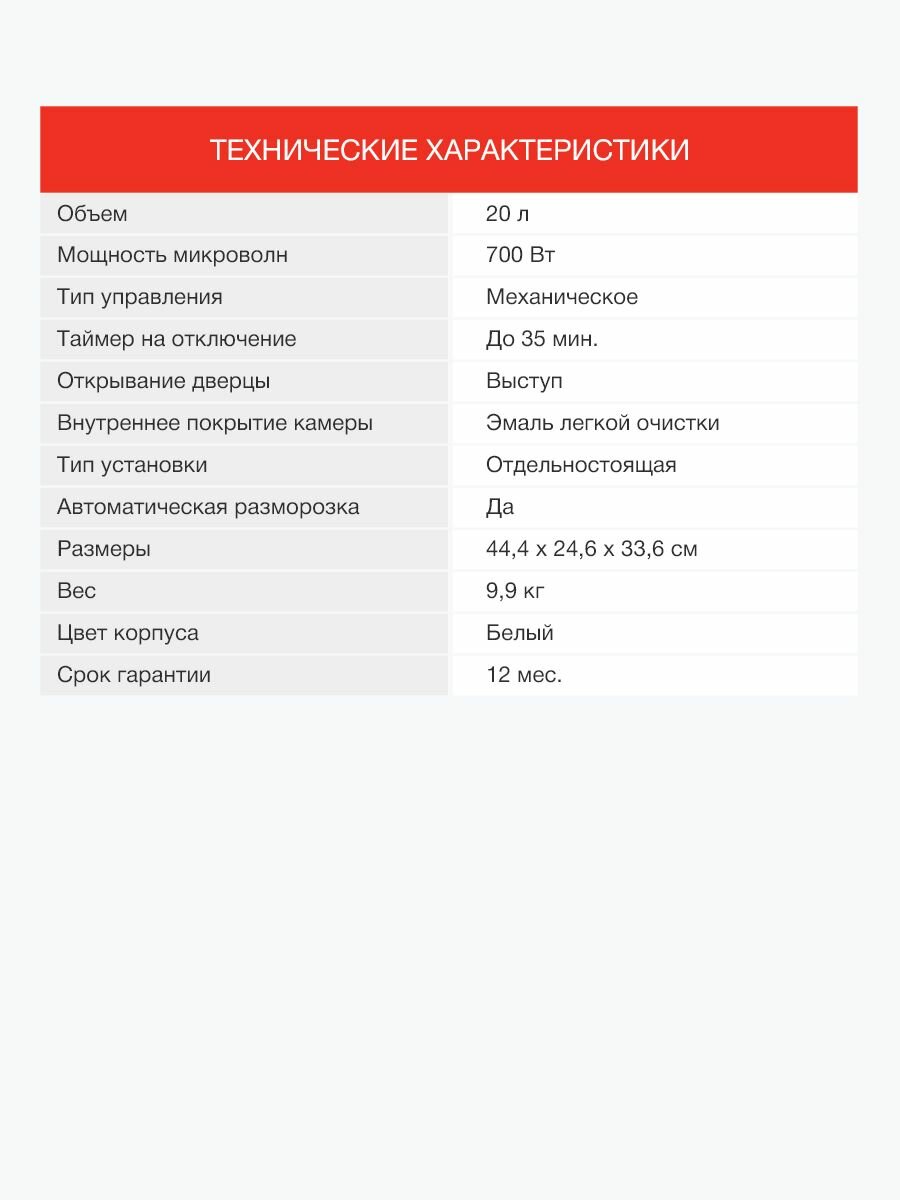 Микроволновая печь Starwind SWM6520 – это оптимальное решение для тех, кто ищет надежный, простой в использовании и доступный по цене прибор для быстрого разогрева и приготовления пищи. Она станет вашим верным помощником на кухне, экономя ваше время и силы.