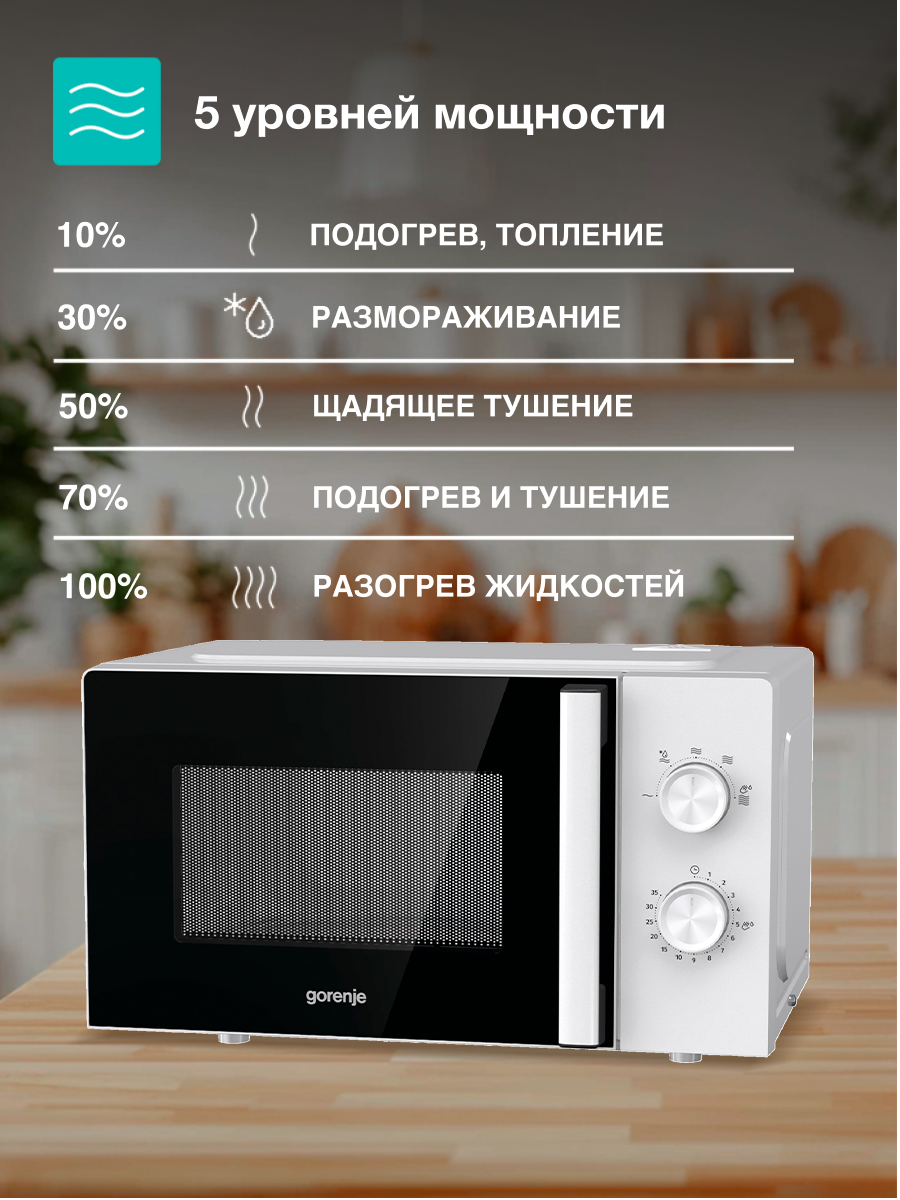 Микроволновая печь Gorenje MO20E1WH – это оптимальное сочетание цены, качества и функциональности. Это отличный выбор для тех, кто ищет надежную и простую в использовании микроволновку для повседневных нужд.