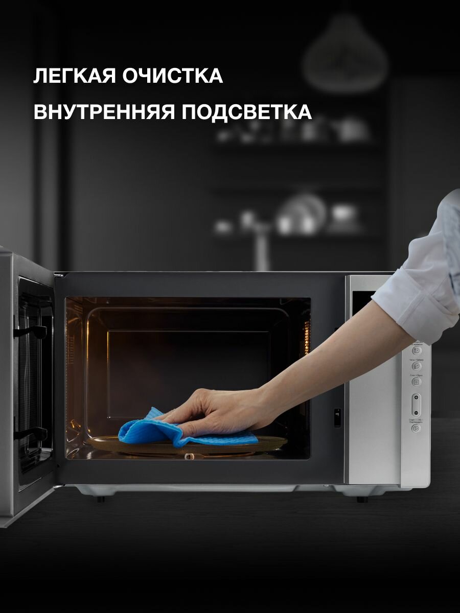 Эта микроволновка – настоящий помощник на кухне. Она позволяет значительно сократить время приготовления, будь то разогрев вчерашнего ужина или быстрое приготовление попкорна для вечернего киносеанса. Вместительный объем камеры позволяет разместить посуду различных размеров, а удобное управление предоставляет возможность выбора оптимальных режимов для разных типов продуктов.