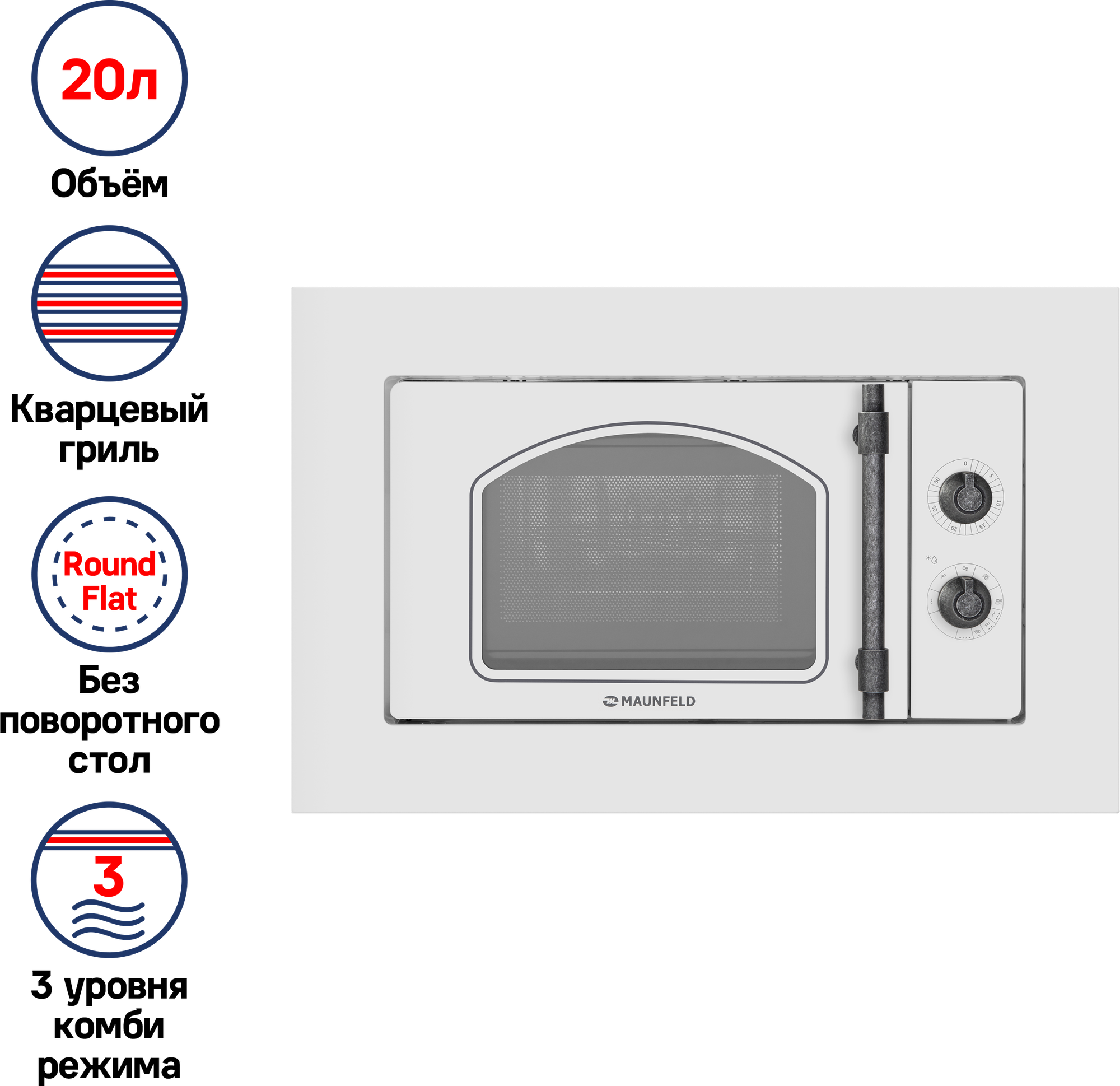 Встраиваемая микроволновая печь Maunfeld JBMO205ERWAS станет не просто функциональным дополнением вашей кухни, но и ее стильным акцентом, подчеркивающим ваш безупречный вкус. Приобретите эту модель, и наслаждайтесь комфортом и удобством в приготовлении ваших любимых блюд!