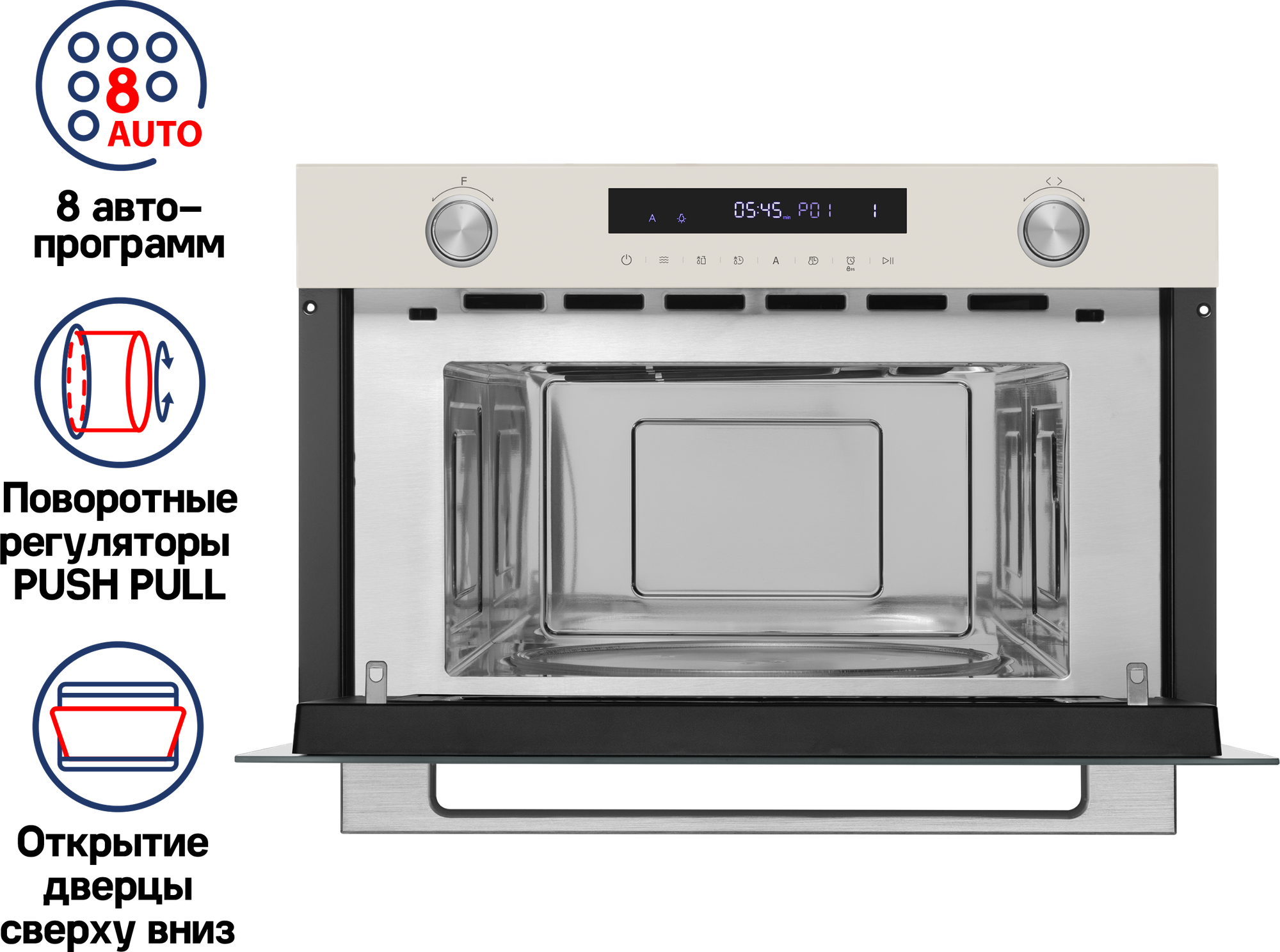 Эта микроволновка гармонично впишется в любой интерьер, добавив ему элегантности и изысканности. Благодаря встраиваемой конструкции, она значительно экономит пространство на вашей кухне, освобождая место для других важных приборов и кухонной утвари.