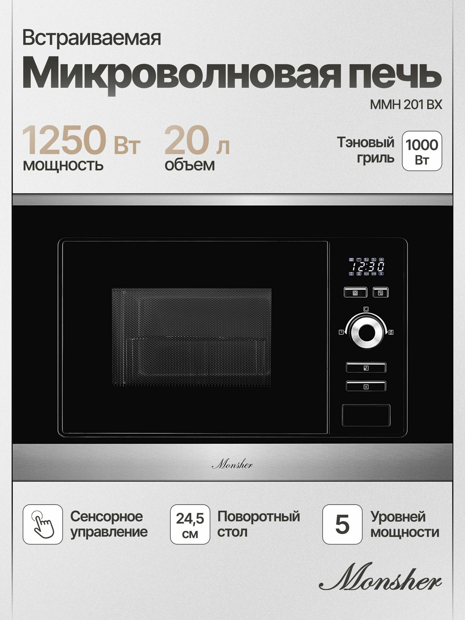 Выбирая встраиваемую микроволновую печь Monsher MMH 201 BX (Модификация 2025 года), вы выбираете стиль, удобство и функциональность, которые сделают процесс приготовления пищи более комфортным и эффективным. Обновите свою кухню с Monsher!