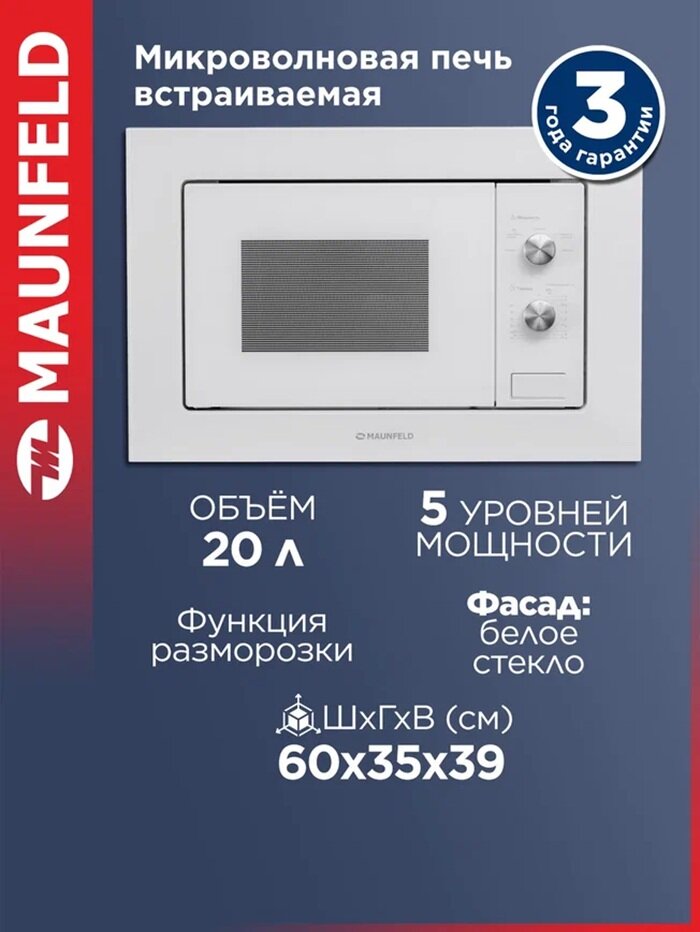 Ищете стильное и функциональное решение для разогрева и разморозки продуктов на вашей кухне? Встраиваемая микроволновка Maunfeld MBMO201PGW - это прекрасный выбор, который гармонично впишется в любой интерьер.