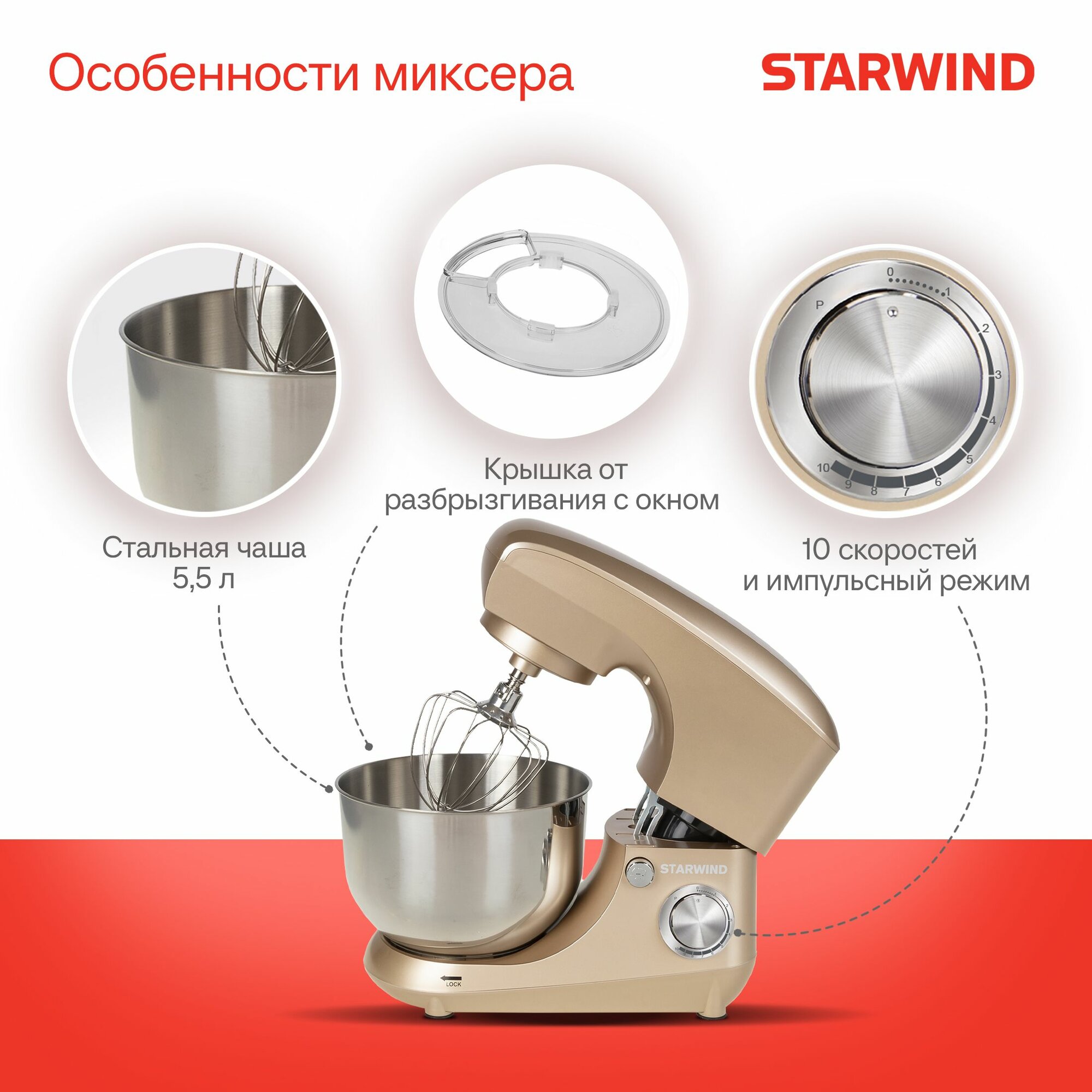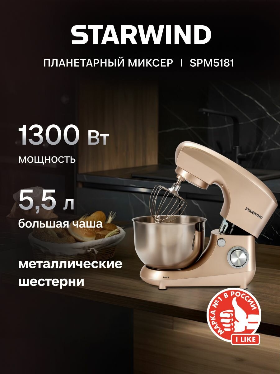 Прочный и надежный, этот миксер прослужит вам долгие годы, радуя безупречной работой и великолепными результатами. Откройте для себя мир новых кулинарных возможностей с планетарным миксером Starwind SPM5181!