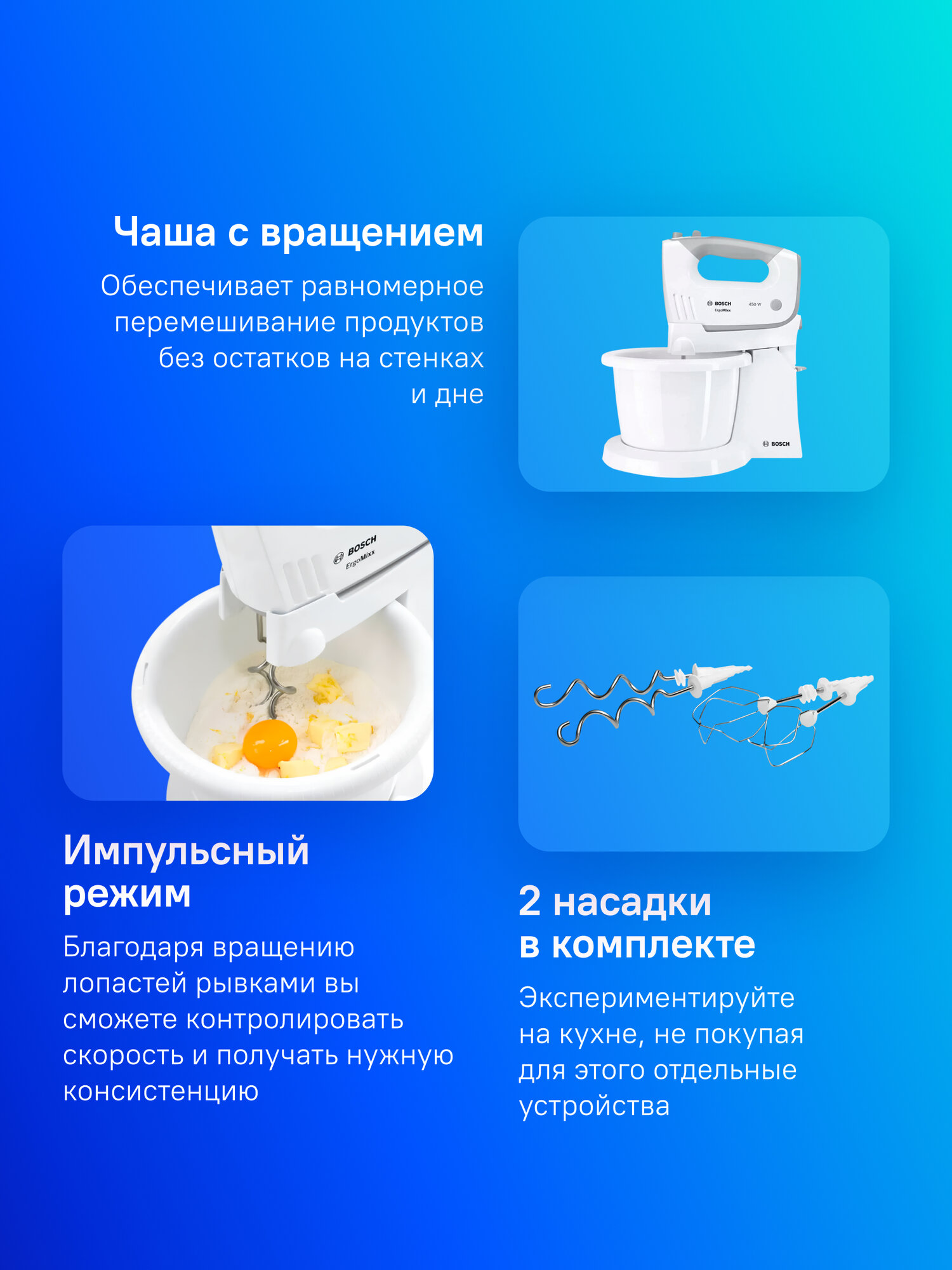 Забудьте о трудоемком ручном перемешивании! С ручным миксером Bosch Mfq36460 приготовление тортов, печенья и других лакомств превратится в удовольствие. Позвольте себе творить кулинарные шедевры, не тратя лишних усилий.