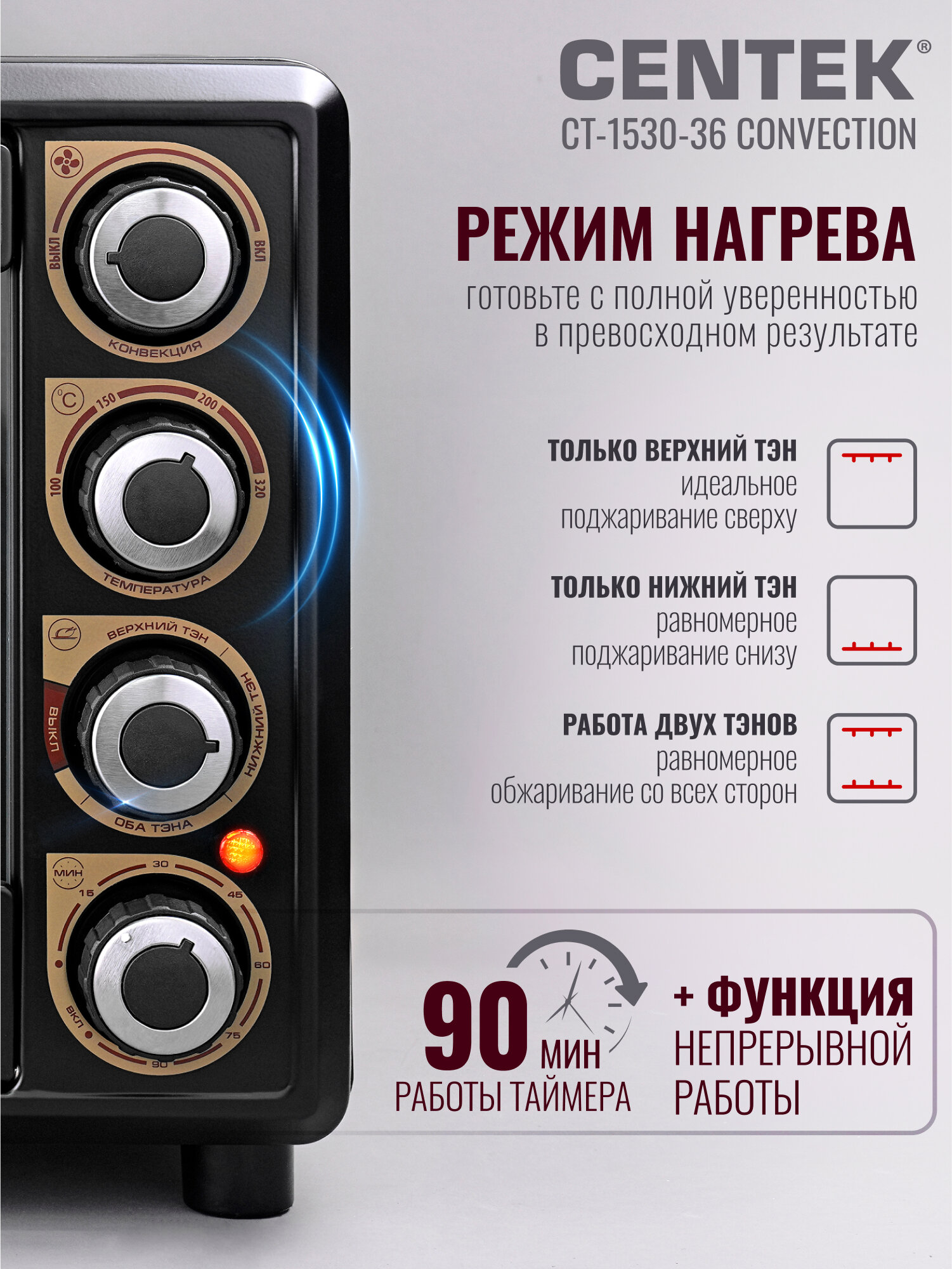 Мини-печь Centek CT-1530 – это отличный выбор для тех, кто ценит удобство, функциональность и превосходный вкус домашней еды. Почувствуйте себя шеф-поваром на своей кухне!