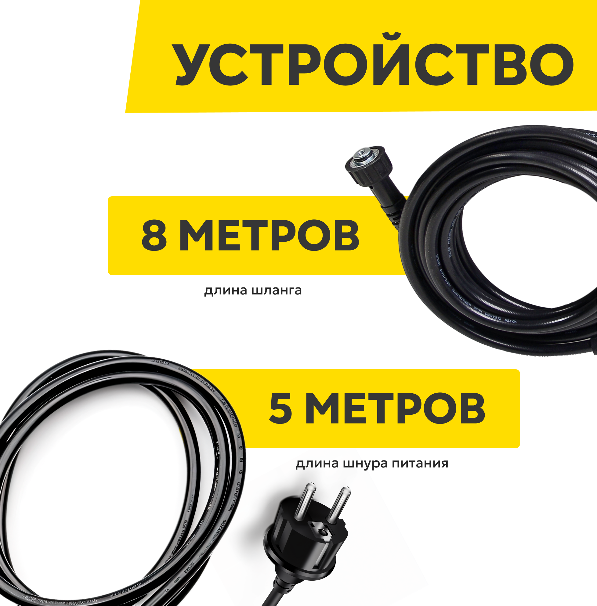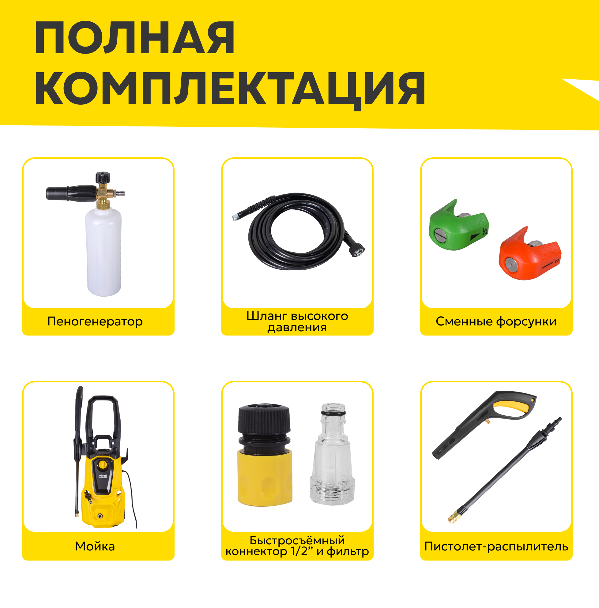 Эта мойка высокого давления справится с самыми сложными задачами, будь то очистка автомобиля, фасада дома, садовой мебели или террасы. Благодаря высокой мощности и давлению, она легко удаляет грязь, пыль, мох и другие загрязнения, возвращая поверхностям первозданный вид.