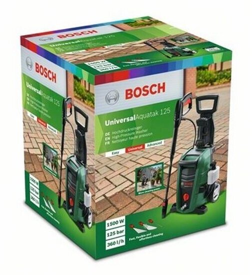 Ищете надежного помощника для уборки вокруг дома и в саду? Мойка высокого давления Bosch UniversalAquatak 125 – это ваш выбор! Эта компактная и мощная мойка идеально подходит для решения широкого спектра задач: от мытья автомобилей и велосипедов до очистки террас, садовой мебели и заборов.