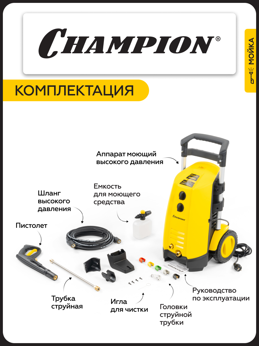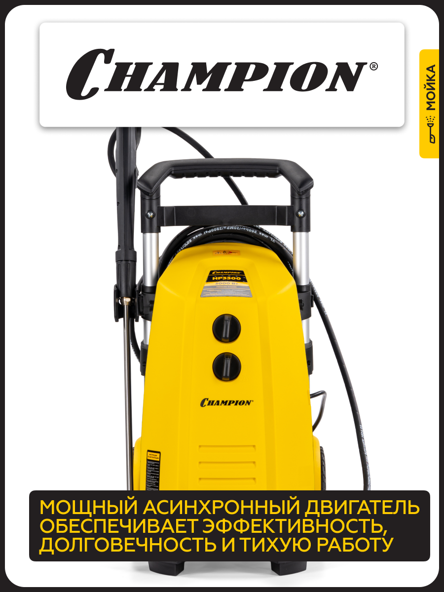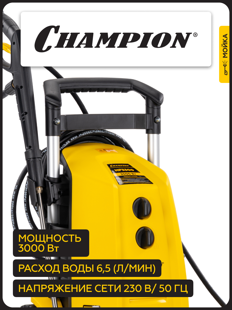 Инвестируйте в чистоту и комфорт с мойкой высокого давления Champion HP3300! Это надежный инструмент, который прослужит вам долго и эффективно, обеспечивая безупречный результат каждый раз.