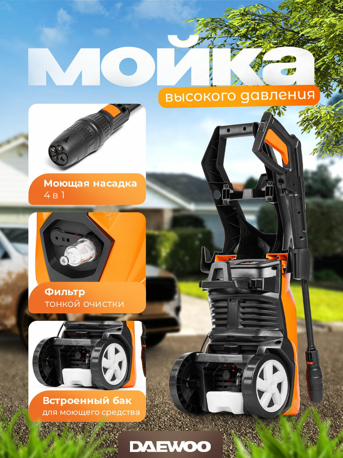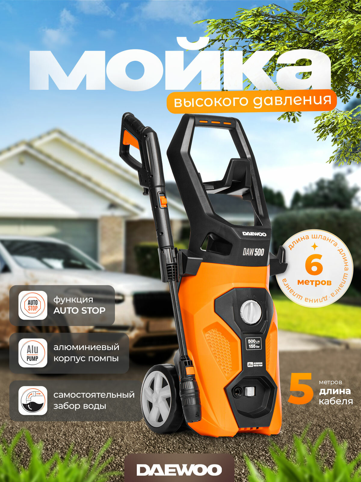 С мойкой высокого давления Daewoo DAW 500 вы сможете легко и эффективно: