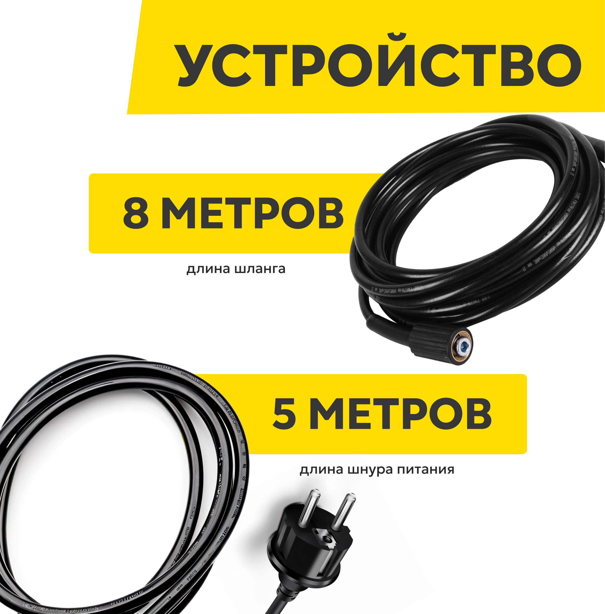 Продуманная конструкция обеспечивает комфортную работу. Длинный шланг позволяет свободно перемещаться вокруг объекта очистки, не переставляя мойку. Встроенный барабан для шланга обеспечивает удобное хранение и предотвращает его спутывание, что значительно продлевает срок его службы.