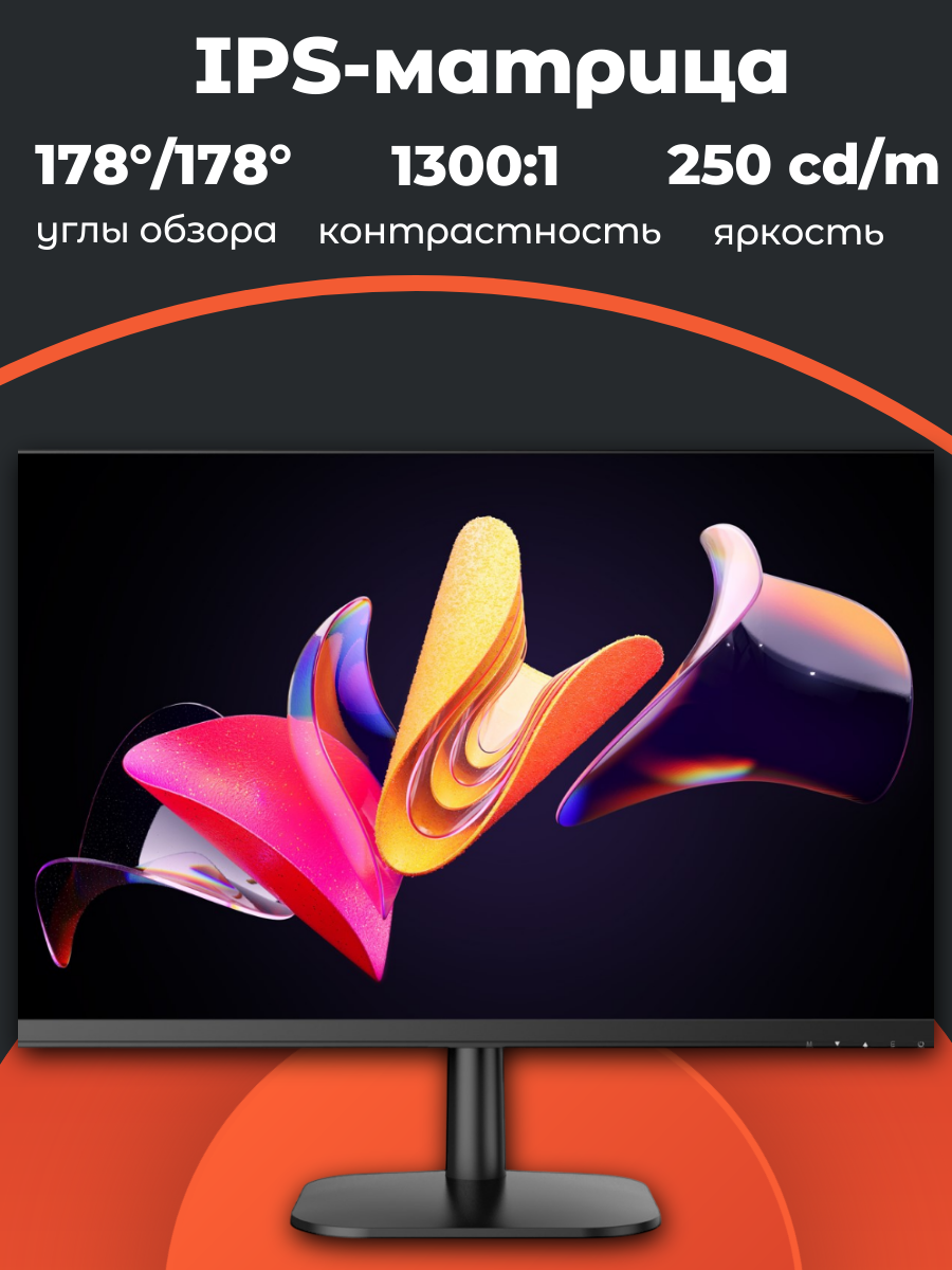 Монитор 27" BRAVUS BVS2725HDM Black (IPS, 1920x1080, 100Hz, 5 ms, 178°/178°, 250 cd/m, 1300:1, +HDMI, +DisplayPort, +MM)