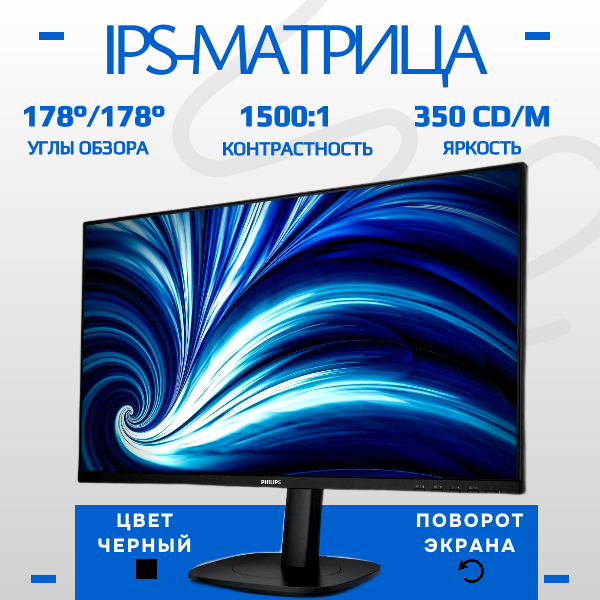 Стильный черный цвет и минималистичный дизайн монитора Philips 27B2N3500J/00 гармонично впишутся в любой интерьер, подчеркнув ваш вкус и индивидуальность.